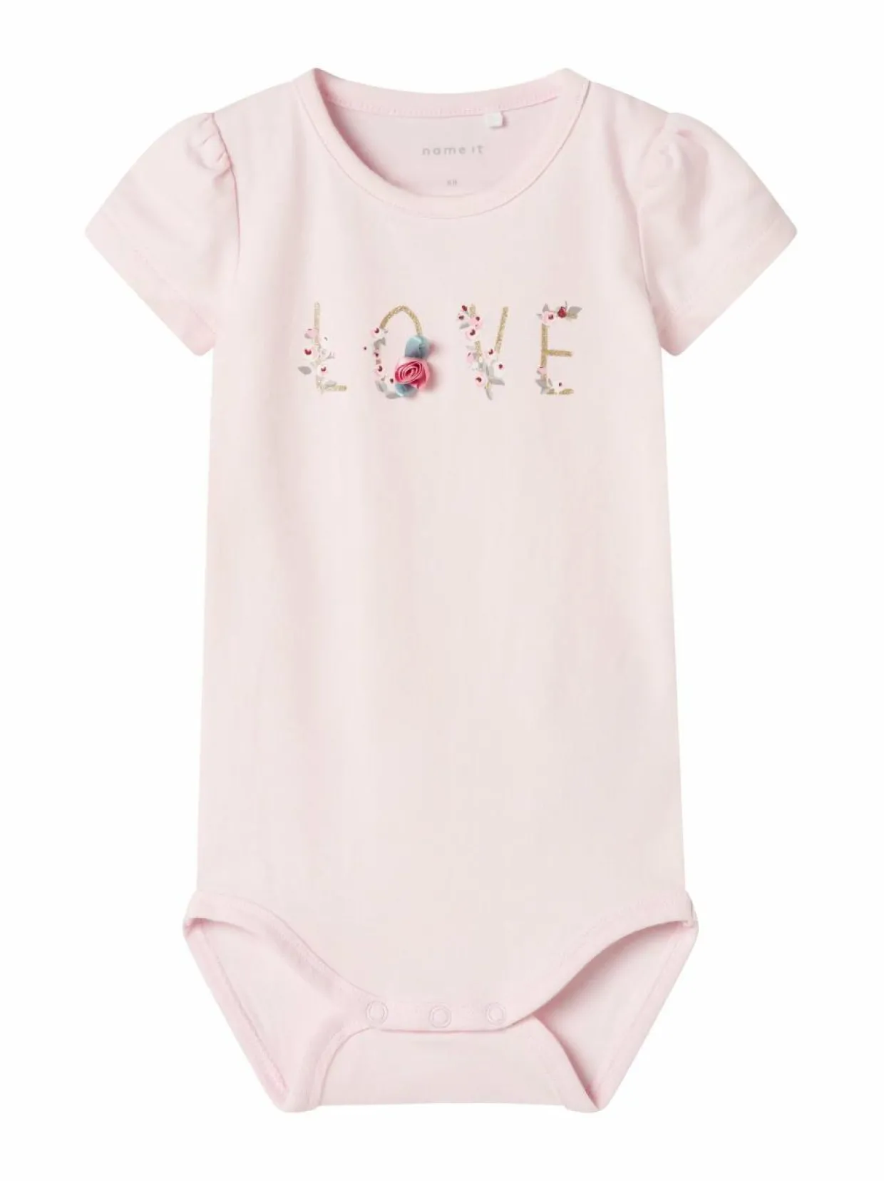 Lyhythihainen body perheen pienimmille. Bodyssa on hieman rypytetyt hihat ja ihana printti edessä. Nepparit haaraosassa helpottavat vaatteen pukemista ja riisumista. Materiaalina on käytetty pehmeän tuntuista ja joustavaa luomupuuvillaa.