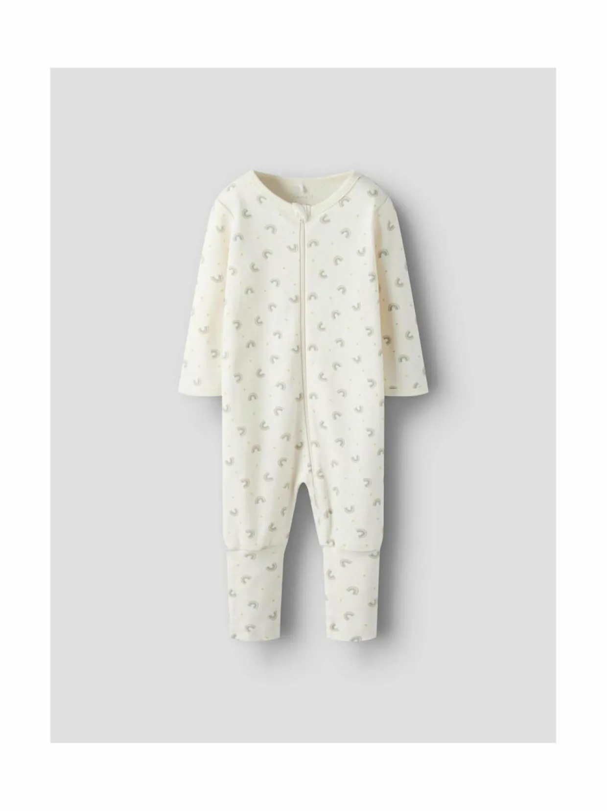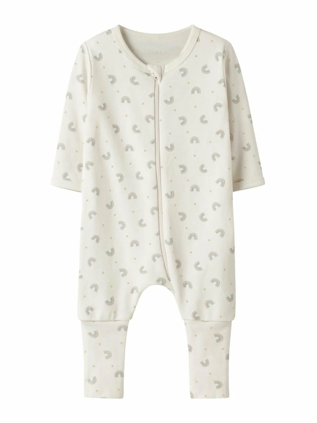Pehmeä ja mukava yöasu, jossa on sateenkaarikuosi. Vetoketjullinen malli tekee pukemisesta helppoa. Materiaali on hengittävää ja kestävää puuvillaa, joka on hellävarainen herkkää ihoa vasten. 51 % materiaalista on luomutuotettua.