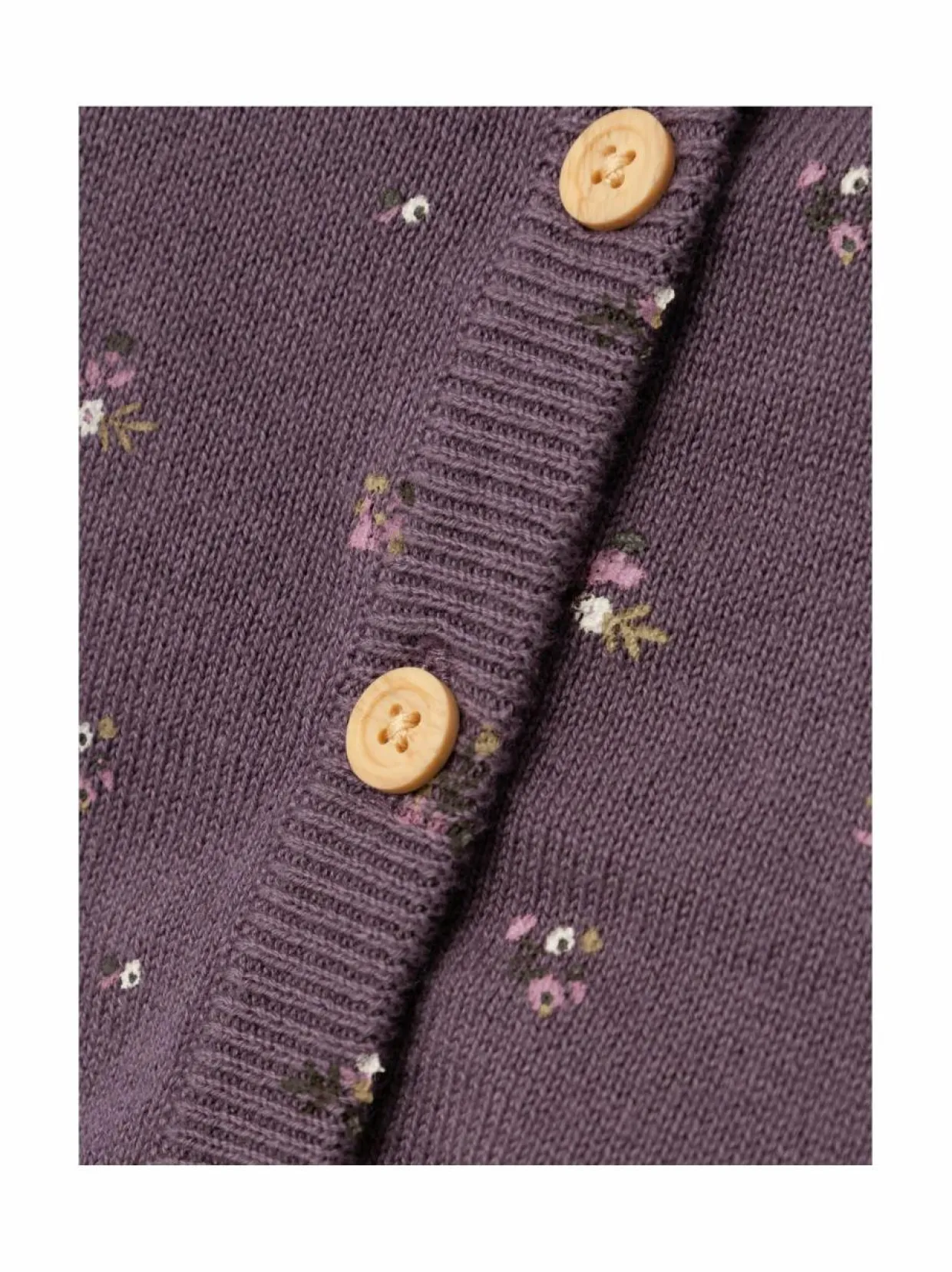 Name It:in NbfOnema-neuletakki on pienillä kukilla kuvioitu kevyttakki. Se kiinnitetään nappilistalla ja sen reunoilla on joustinneuleresorit. Valmistettu 100 % luomupuuvillasta, joka on hyväksi sekä terveydelle että ympäristölle.