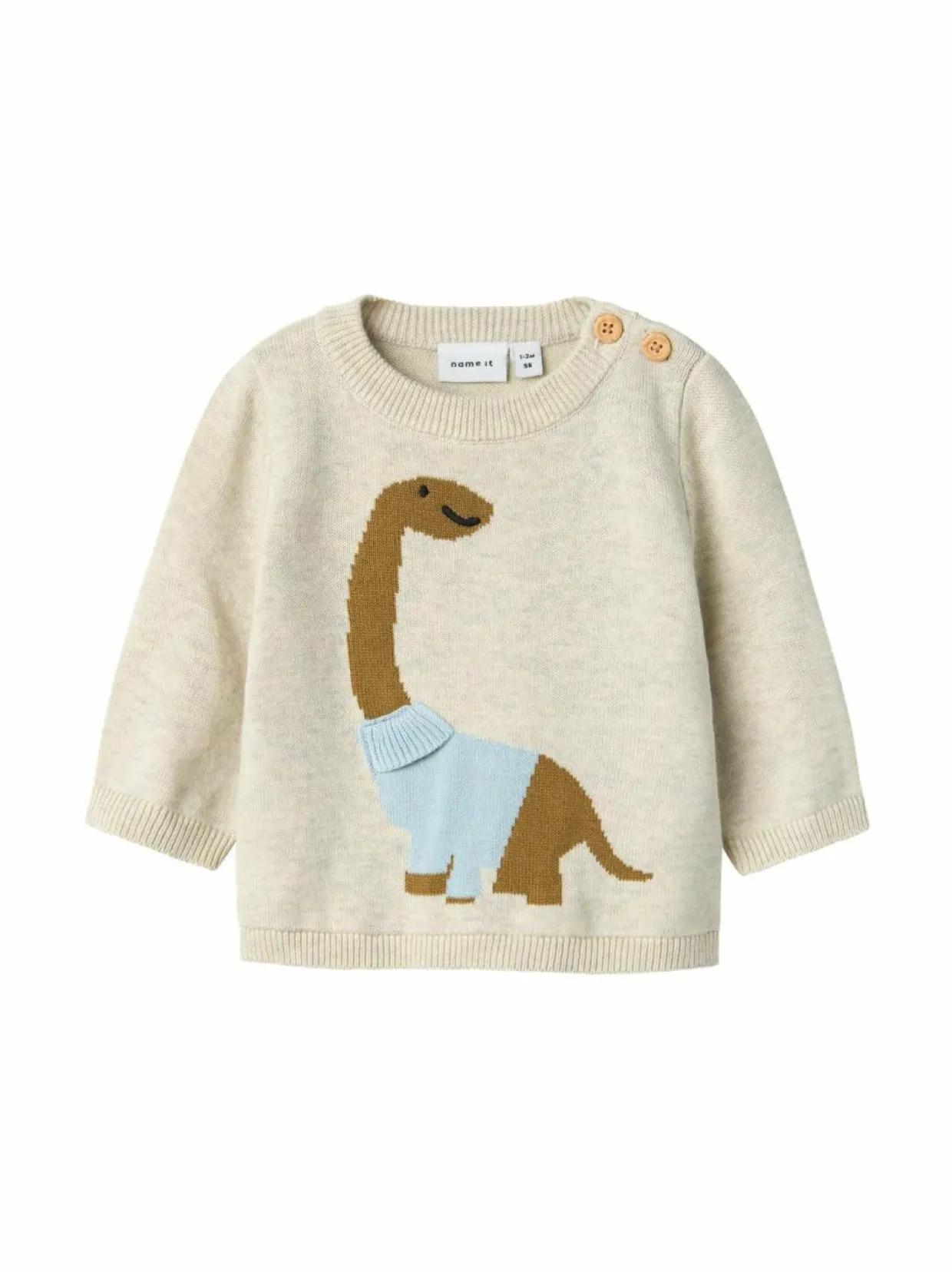 Name It -merkin suloisessa neulepaidassa on iloinen dinokuvio – täydellinen yhdistelmä leikkisyyttä ja lämpöä. 100 % puuvillasta valmistettu paita on pehmeä ja hengittävä, mikä tekee siitä miellyttävän käyttää ympäri vuoden. Olkapään nappikiinnitys helpottaa pukemista ja riisumista.