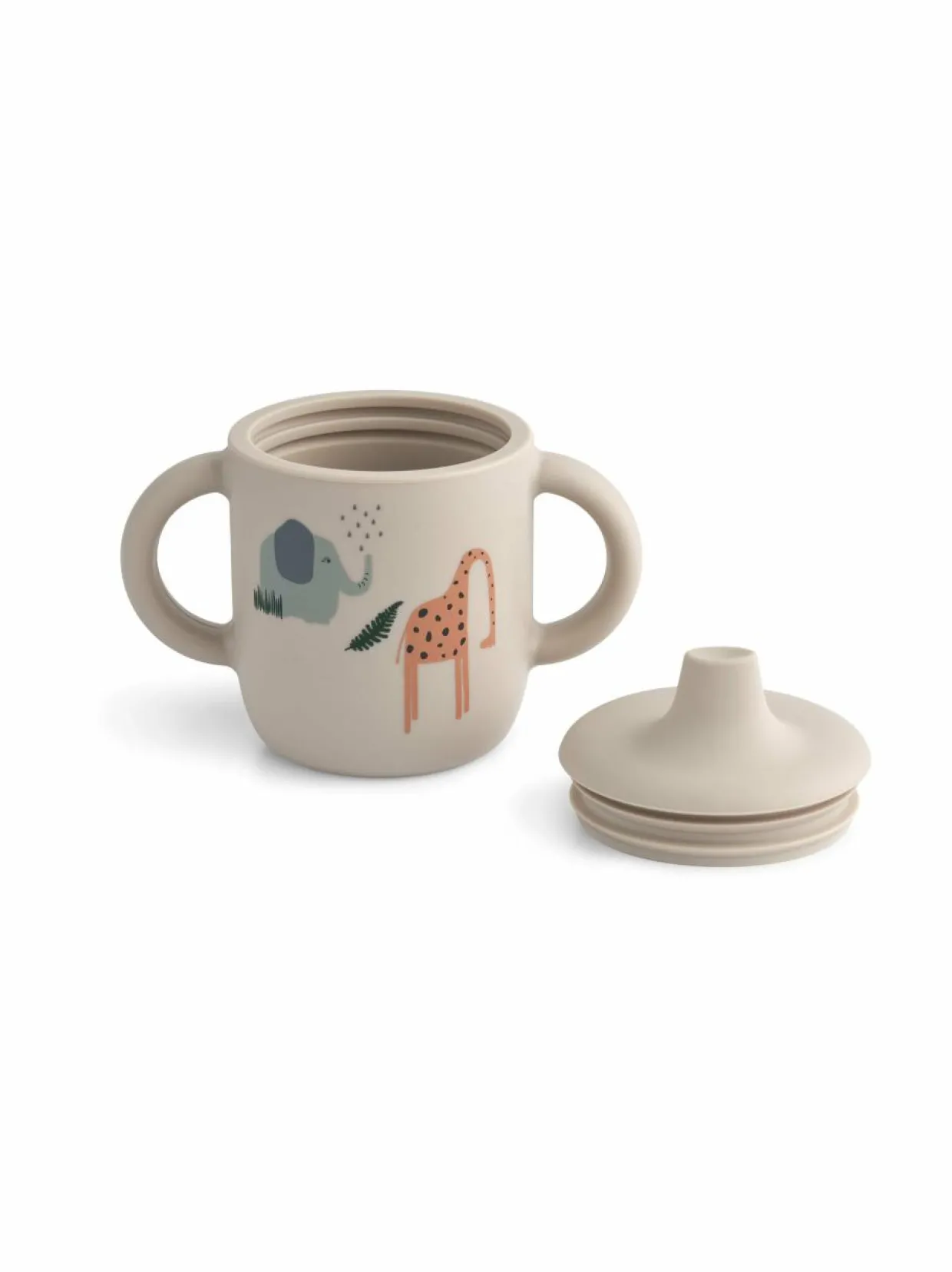 Liewood Neil -silikoninen nokkamuki on kaksikahvainen muki, josta pienempikin lapsi saa hyvän otteen. Silikoninen muki on kevyt, juuri oikean kokoinen ja pehmeä lapsen ihoa vasten. Nokkamukia voi käyttää myös ilman nokkaosaa. Mitat: Halkaisija 7 cm, korkeus 10,5 cm ja leveys 12 cm. Tilavuus 150 ml.