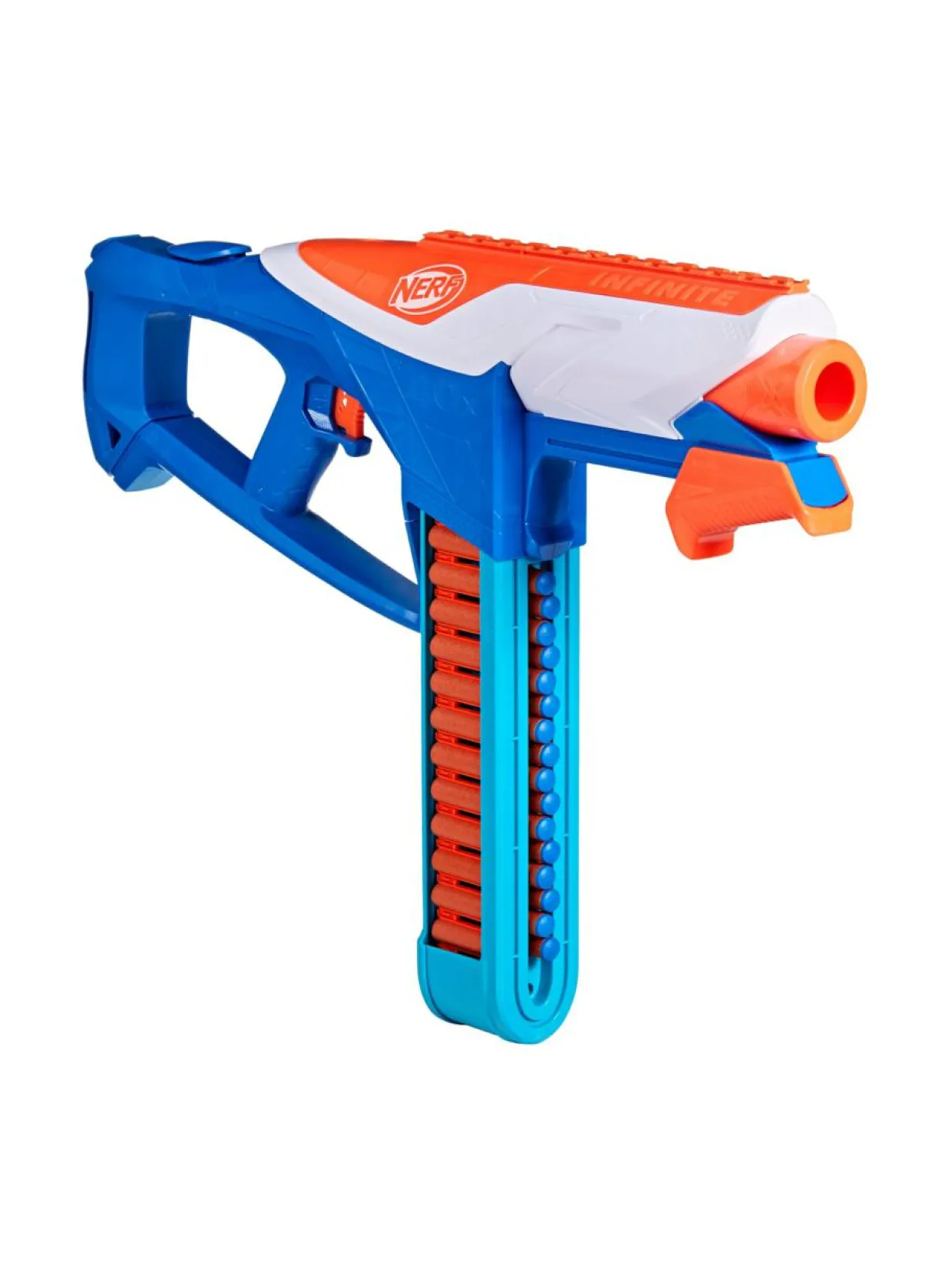 Nerf-brändi nostaa leikkitaistelut seuraavalle tasolle huipputehokkailla Nerf N -sarjan leikkipyssyillä ja Nerf N1 -ammuksilla! Sinulla on taidot ja nyt sinulla on myös ase ja ammukset, jotka antavat sinulle ylivoimaisen etulyöntiaseman sisä- ja ulkotaisteluissa. Alkuperäiset vaahtomuoviammukset kehittänyt Nerf esittelee nyt vaahtomuoviammusten seuraavan sukupolven, Nerf N-sarjan N1-ammukset, jotka tarjoavat ERITTÄIN SUUREN OSUMATARKKUUDEN, NOPEUDEN ja KANTAMAN! Nerf N -sarjan Infinite-leikkipyssyssä on innovatiivinen taisteluvyön näköinen lipas, jonka ansiosta voit ladata leikkipyssysi nopeasti ja helposti jopa keskellä taistelua! Nyt sinun ei enää tarvitse keskeyttää hyökkäystäsi lataamista varten! Irrotettavaan lipasvyöhön mahtuu uskomattomat 40 ammusta kerralla, jotta voit ampua vastustajiasi lähes taukoamatta. Lisäksi ammusvyössä on säilytyskohdat 16 ammukselle, jotka voit nopeasti ladata ammusvyöhön taistelun tiimellyksessä. Pumpputoimisen Infinite-leikkipyssyn mukana tulee 80 Nerf N1 -vaahtomuoviammusta. Lataa ammukset lippaaseen, viritä ase pumppaamalla, tähtää ja ammu vetämällä liipaisimesta. Nerf N-sarjan leikkipyssyt ovat yhteensopivia vain Nerf N-sarjan N1-ammusten kanssa.