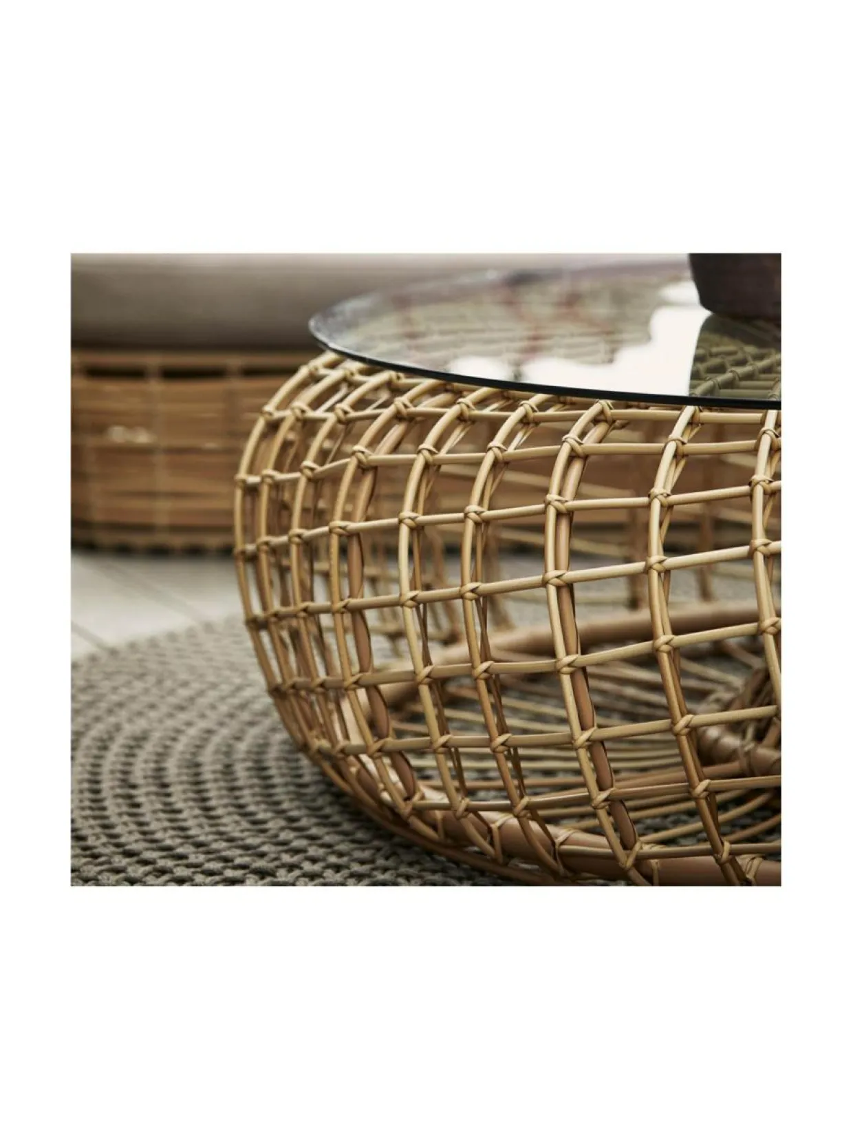 kirkas lasikansi. Lasi on irtonainen, tuotetta voi käyttää ilman lasia myös rahina.Tuotenumero1116299 MateriaaliCane-line Weave® -punos, alumiini, lasi Takuu24 kk VäriBEIGE Koko130 x 42 cm Avainsanatrahit, sohvapöydät, ulkokalusteet