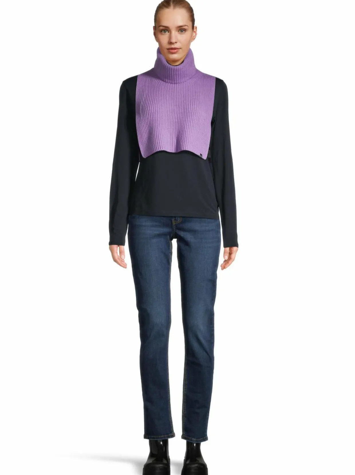 KN Kati Niemi poolokauluri on lämmin neulekauluri naisille. Miellyttävän pehmeä materiaali on sekoitetta, johon on käytetty muun muassa villaa sekä ylellistä kashmiria (10 %). Tämä neulottu poolokauluri on leveä niin edestä kuin takaa. Pääntien pitkä resori pitää sinut lämpimänä. Valmistettu Italiassa.