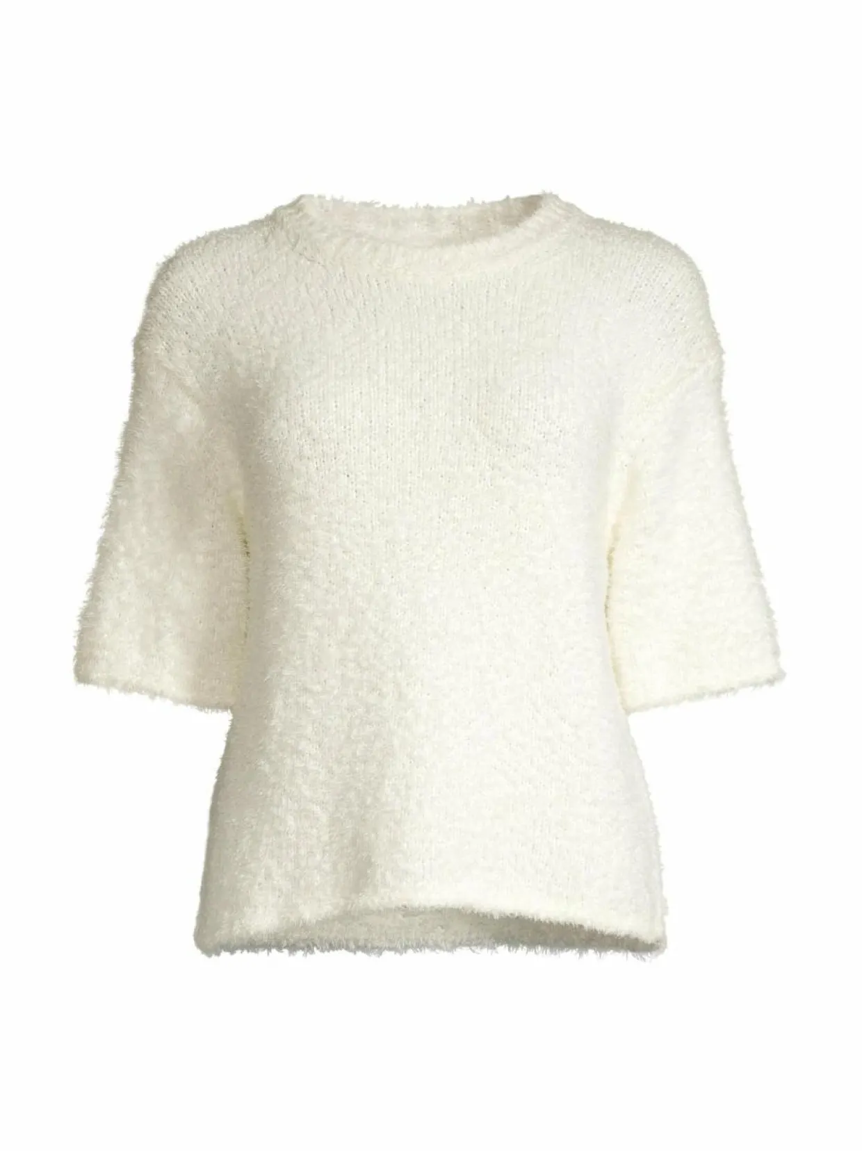 Lyhythihainen neulepusero, jossa pyöreä pääntie ja pehmeä, hieman pörröinen pinta. Pusero tarjoaa mukavuutta arkeen. Materiaali on hengittävää luomupuuvillaa, joka on luonnollinen, kestävä ja miellyttävä iholla.