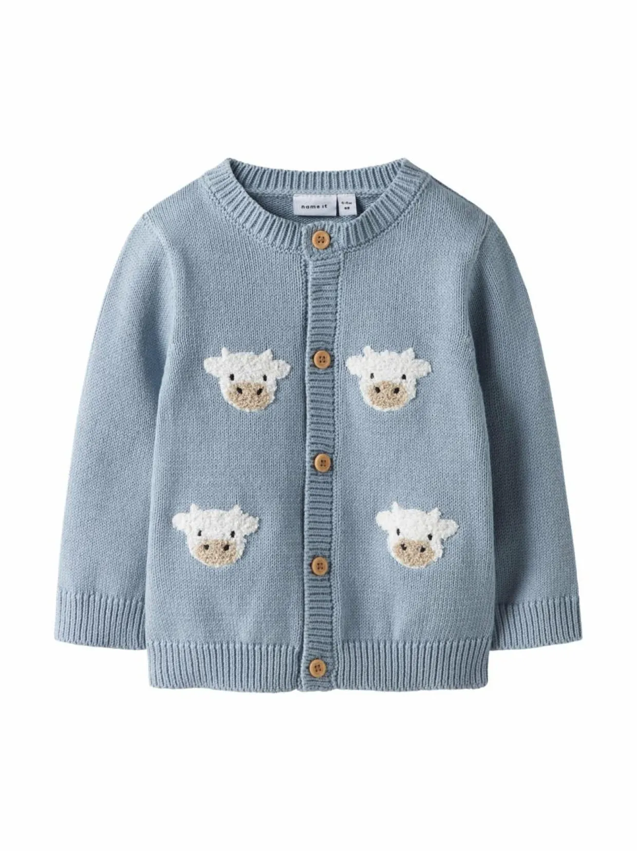 Materiaali100 % puuvilla VäriDUSTY BLUE Avainsanatneule, Name It, lasten neule, puuvilla, luomupuuvilla, lastenvaatteet