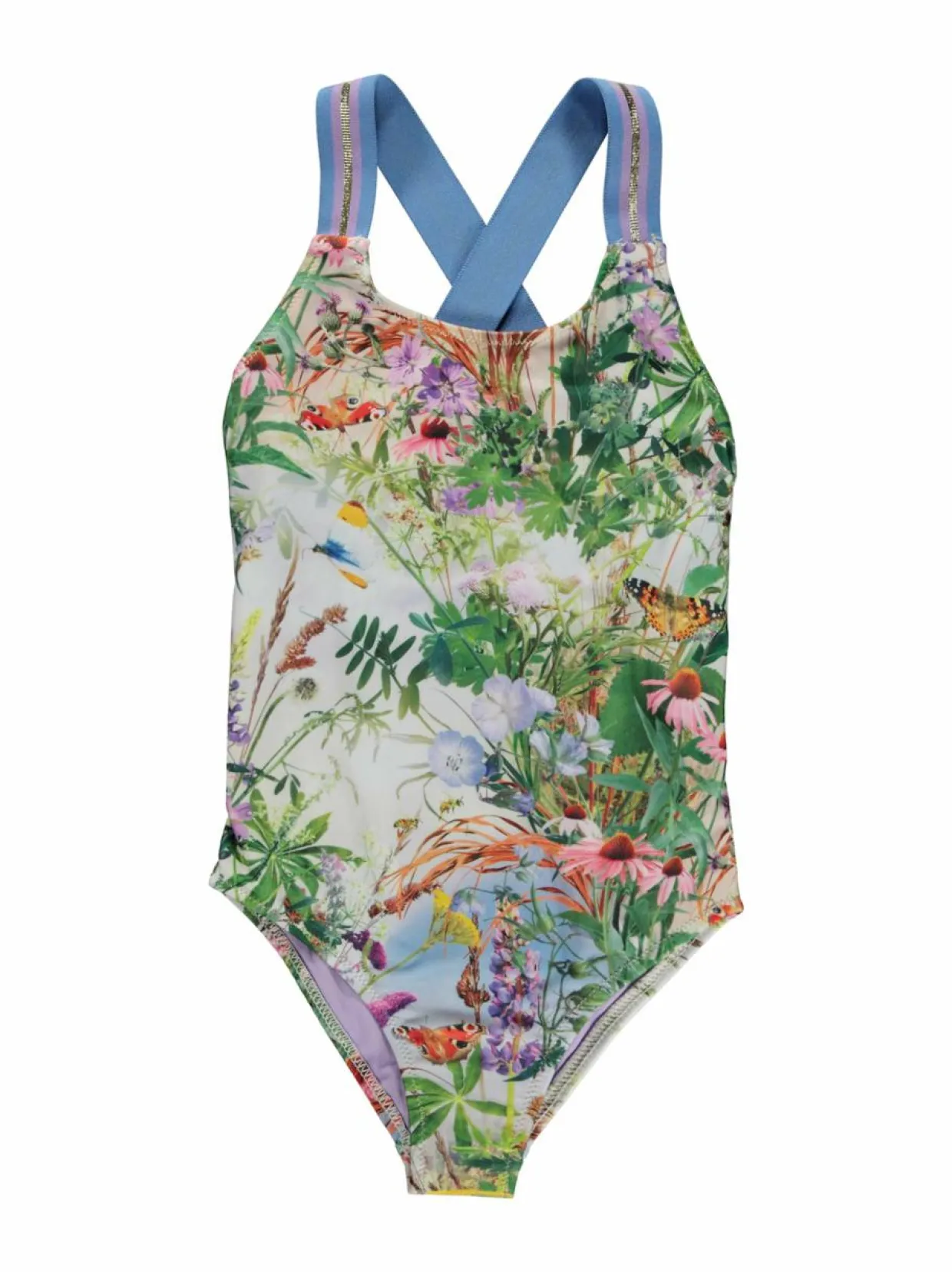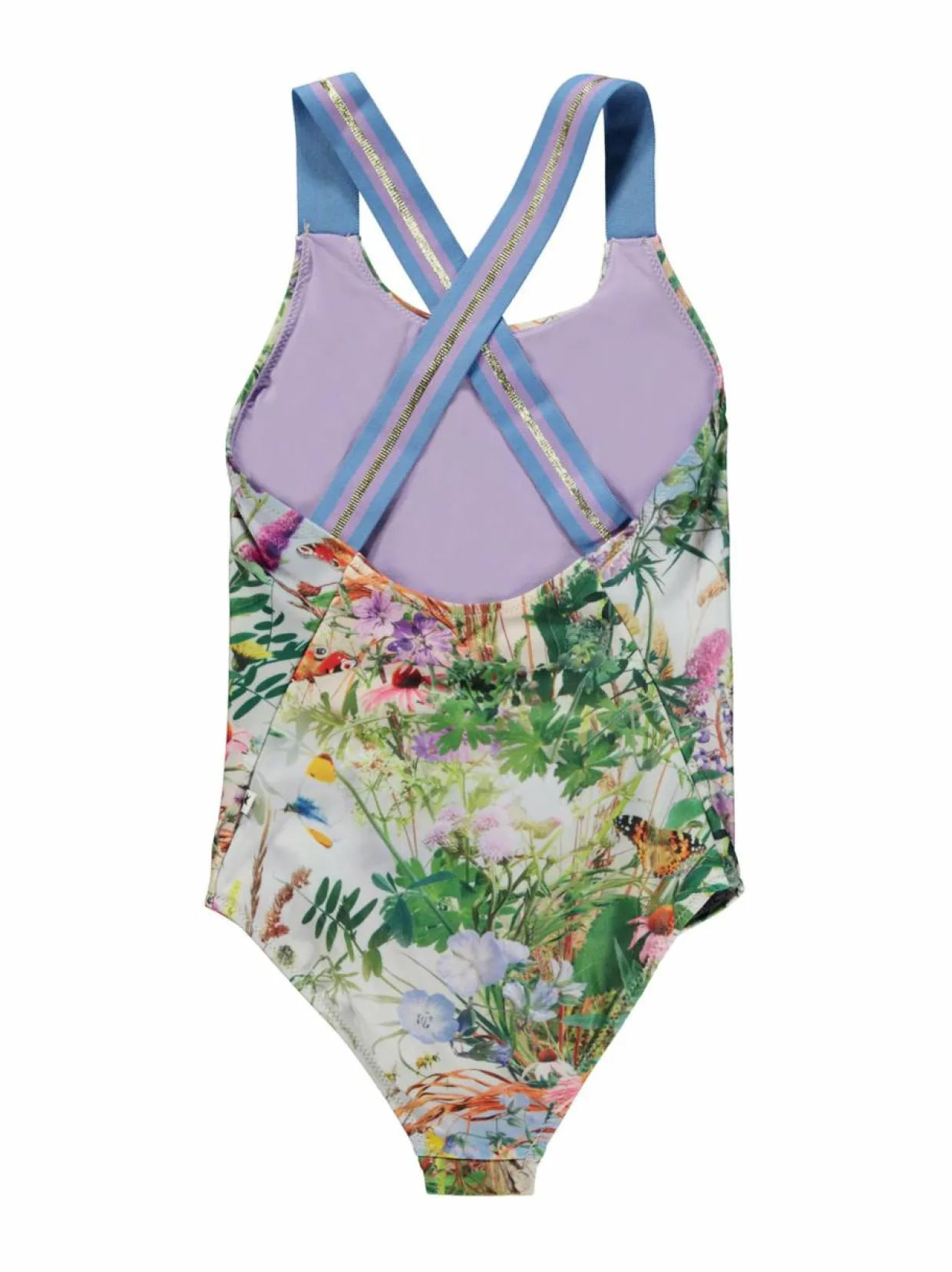 Joustava ja nopeasti kuivuva uimapuku laadukkaalla printillä. Mukavan leveät olkaimet kulkevat selkämyksessä ristikkäin. Uimapuvussa on 50+ UV-suoja.