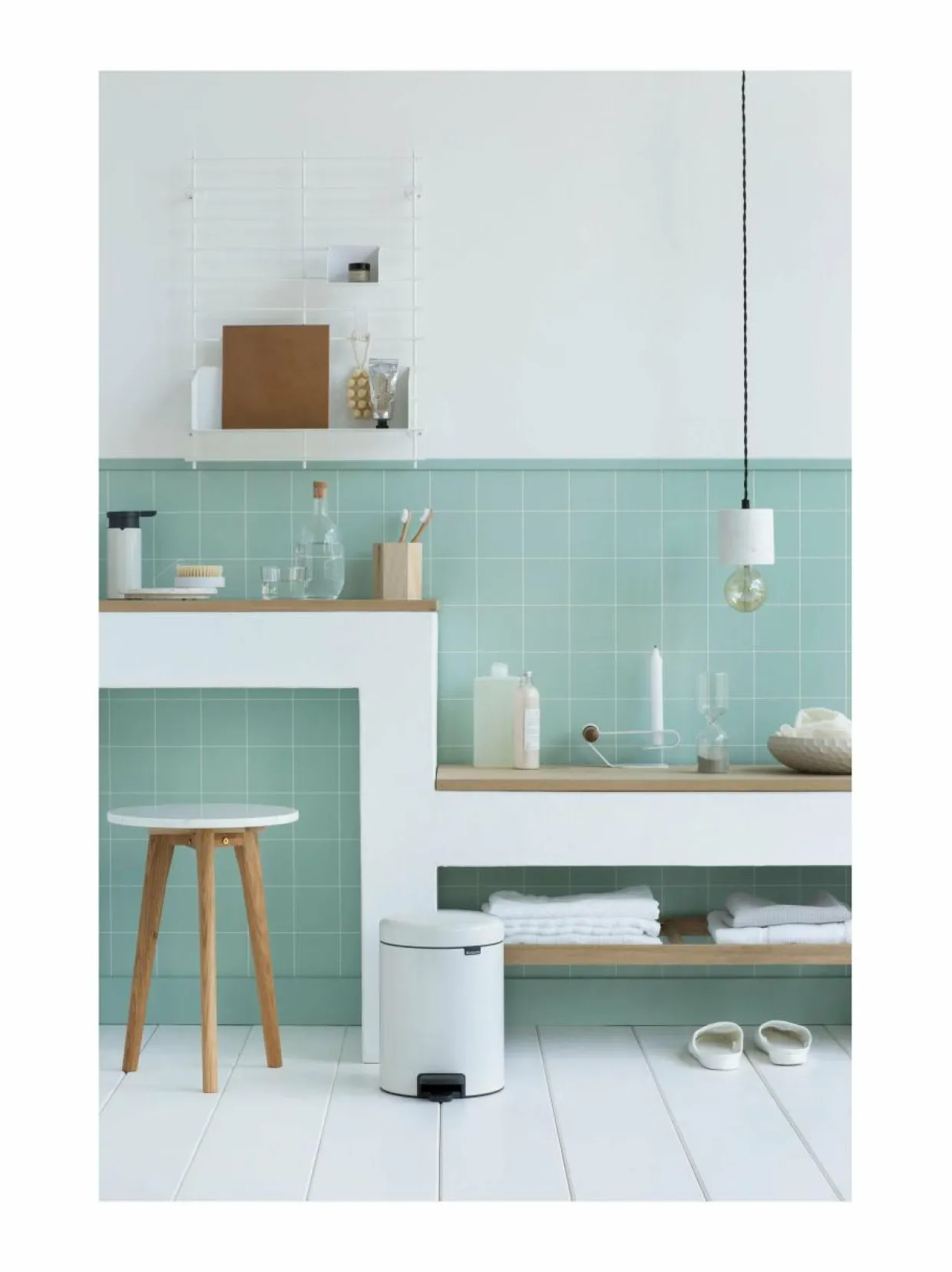 Brabantian kompakti ja suoralinjainen newIcon-poljinroskis on tilavuudeltaan 5 litraa ja siinä on pehmeästi ja hiljaisesti sulkeutuva kansi, lattiaa suojaava liukumaton pohja sekä irrotettava säiliöosa.