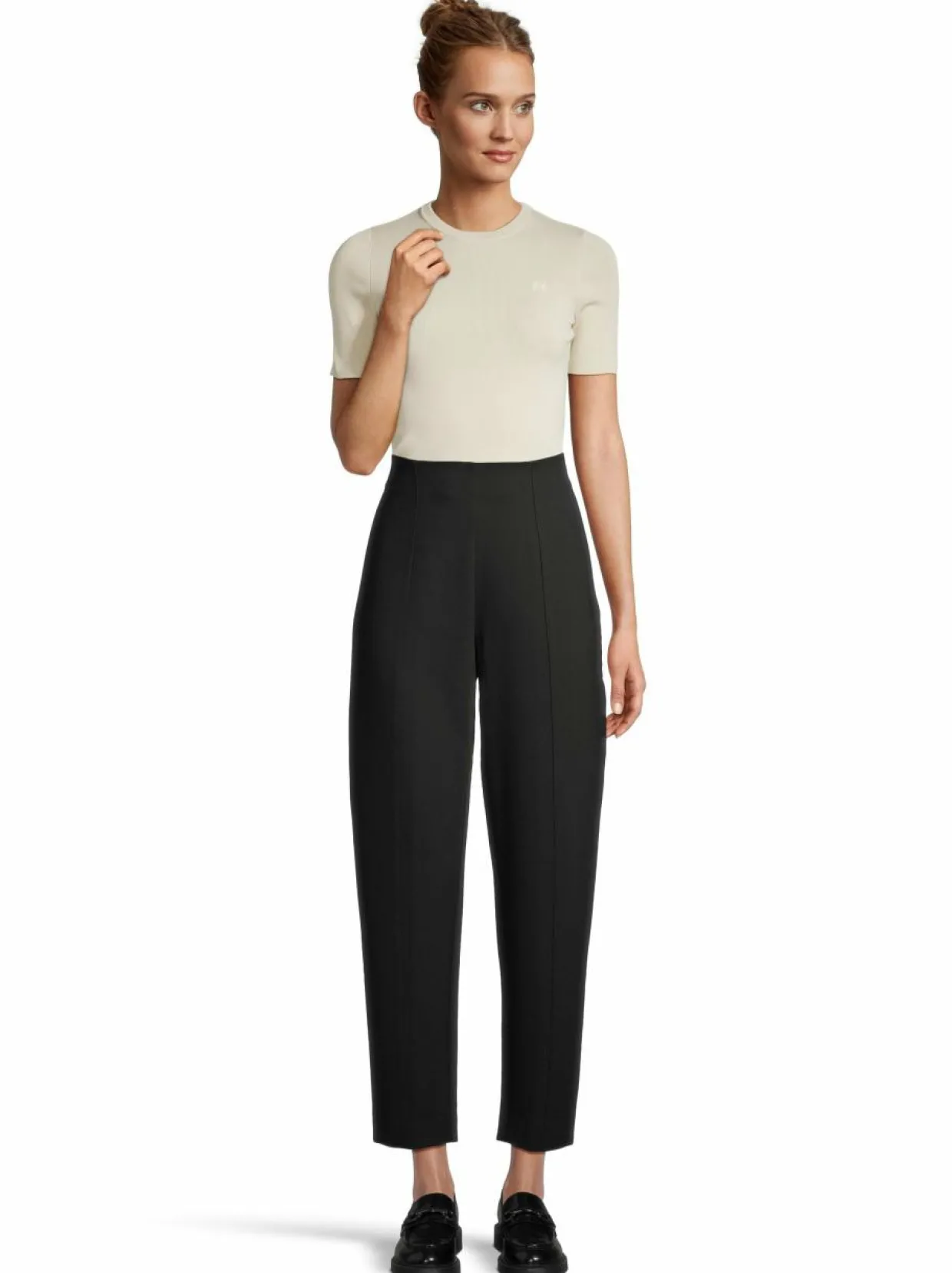 Noomin Nicole-housut ovat miellyttävän joustavaa laatua. Yksityiskohtana kapenevat lahkeet, mukavan korkea vyötärölinja ja pystysaumat edessä. Sivulta löytyy vetoketjusulku. Materiaalina on käytetty silkkimäisen tuntuista Ecovero-viskoosiyhdistelmää.
