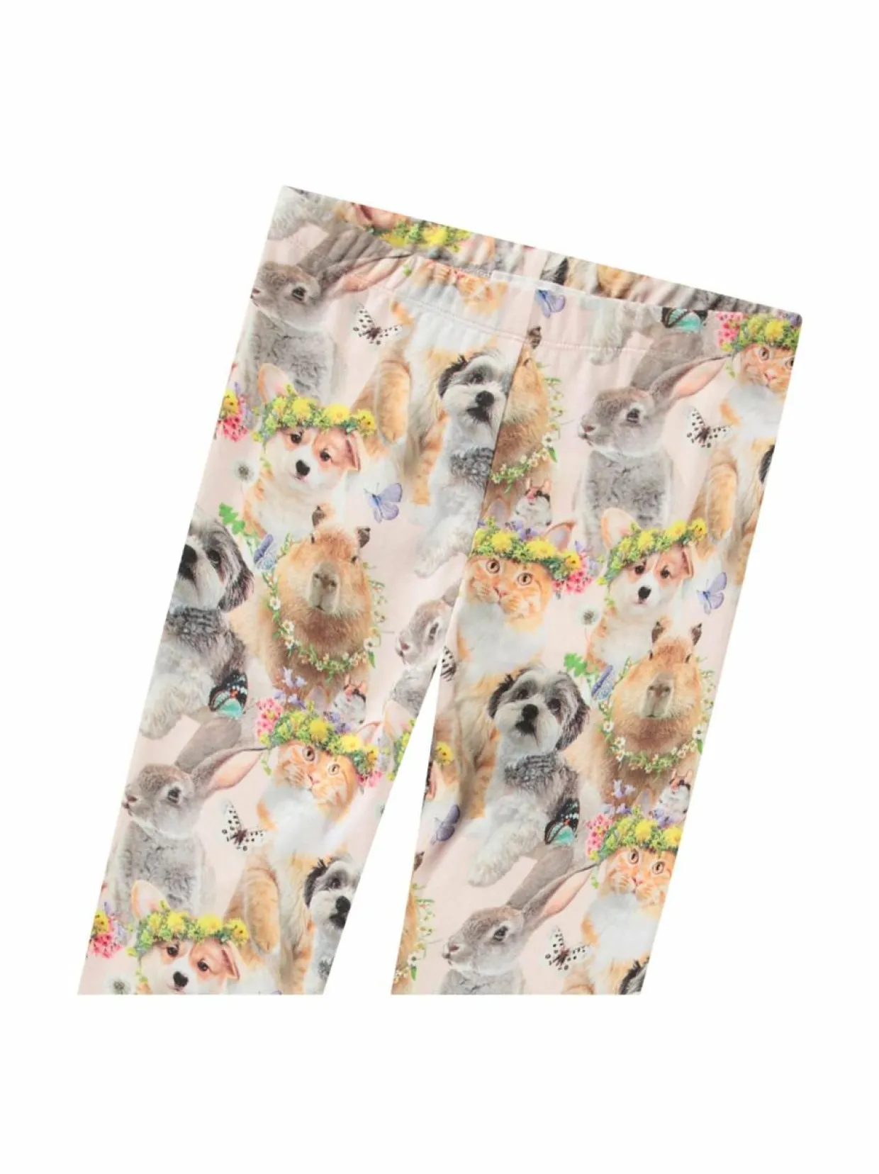 Molon Niki-leggingsit ihastuttavassa eläinkuosissa. Ne ovat mukavat ja joustavat, ja niitä on helppo yhdistää erilaisten asujen kanssa. Leggingsit on valmistettu pehmeästä luomupuuvillasta, johon on lisätty myös mukavasti joustoa.