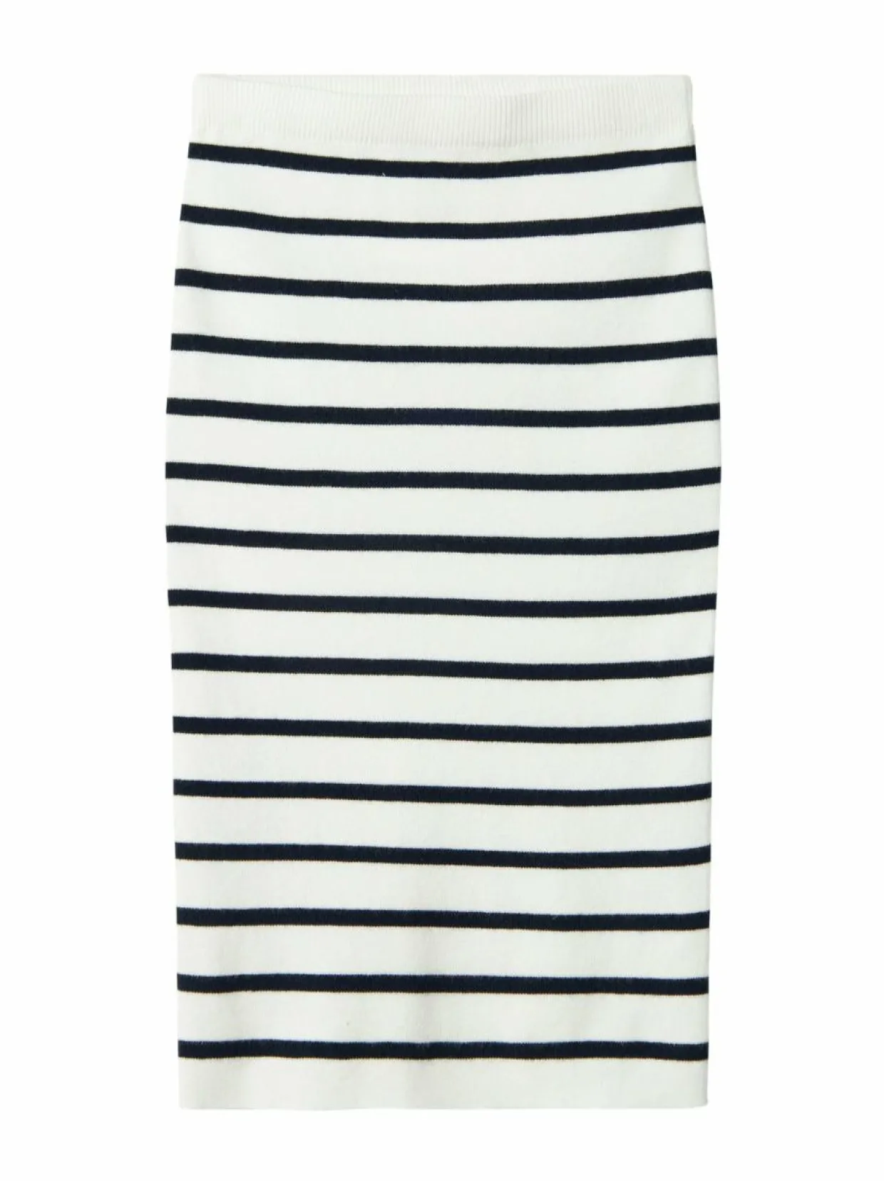 Name It -merkin klassinen raitakuvioinen hame tuo tyyliin raikasta merihenkisyyttä. Hame on valmistettu pehmeästä ja miellyttävästä viskoosisekoitteesta, joka laskeutuu kauniisti ja tuntuu mukavalta päällä. Hameen joustava vyötärö varmistaa hyvän istuvuuden ja tekee siitä miellyttävän käyttää koko päivän.