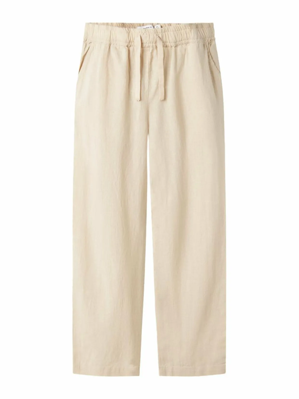 Nämä Name It -merkin NkfFallinen-housut ovat mukavat ja käytännölliset. Housut ovat valmistettu pehmeästä puuvilla-pellavasekoitteesta, joka hengittää hyvin ja tuntuu miellyttävältä iholla. Housuissa on joustava vyötärö, jossa on solmittava kiristysnauha. Housut sopivat täydellisesti arkikäyttöön ja ne ovat helppo yhdistää muihin vaatteisiin. Puuvilla on luonnollinen materiaali, joka on pehmeää ja hengittävää. Se on myös kestävä ja helppohoitoinen. Pellava on luonnollinen materiaali, joka on hengittävää ja viilentävää.