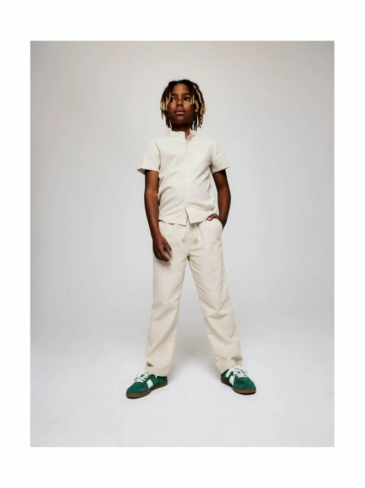 Materiaali80 % puuvilla, 20 % pellava Hoito-ohjeetKonepesu 40 °C. ValmistusmaaIntia VäriPEYOTE AvainsanatNAME IT, housut, lastenhousut, puuvillahousut, pellavahousut, mukavat housut