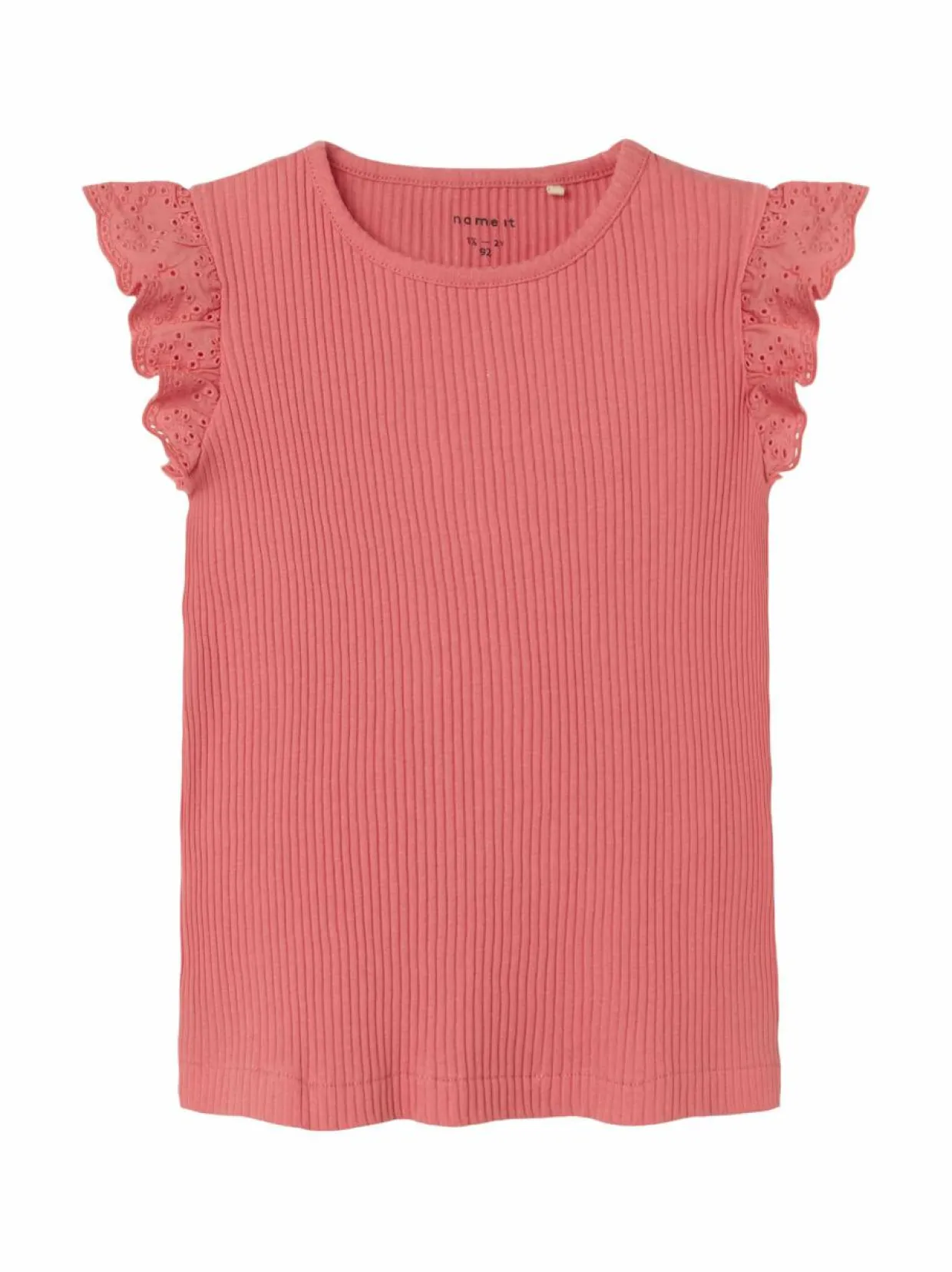 Materiaali92 % puuvilla, 8 % elastaani PesuohjeetKonepesu VäriSPICED CORAL Avainsanatname it, t-paita, paita, ribbipaita, röyhelö, pitsi, frilla, hihaton pusero, toppi, ribbitoppi