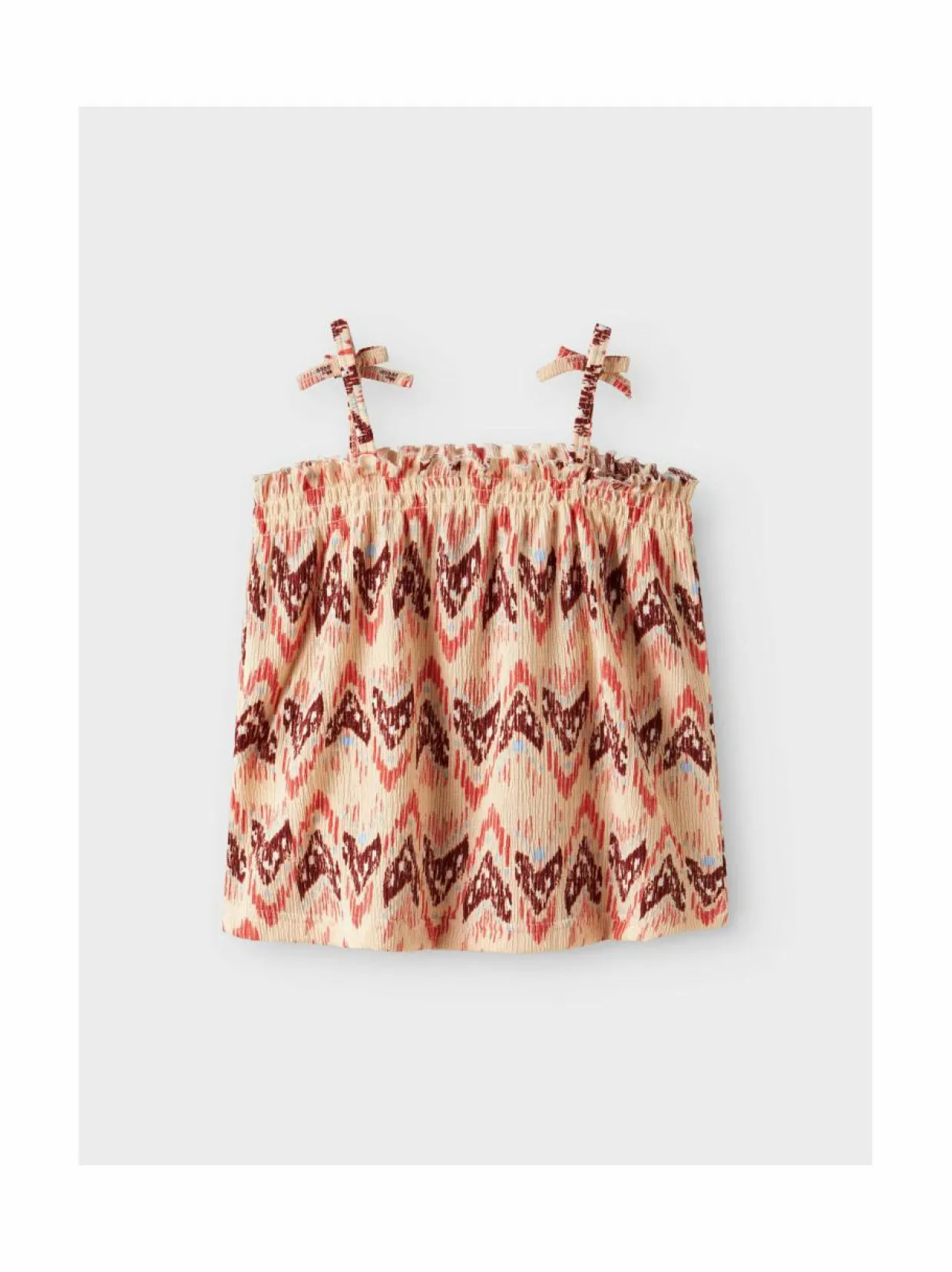 Kevyt ja joustava toppi, jossa on ohuet olkaimet ja yksinkertainen muotoilu. Toppi on valmistettu joustavasta polyesterin ja elastaanin sekoituksesta, mikä takaa miellyttävän tunteen ihoa vasten ja hyvän liikkuvuuden. Polyesteri tuo toppiin kestävyyttä ja auttaa sitä säilyttämään muotonsa, kun taas elastaani antaa sille lisäjoustoa. Topin ilmava ja kevyt materiaali tekee siitä täydellisen lämpimiin päiviin.