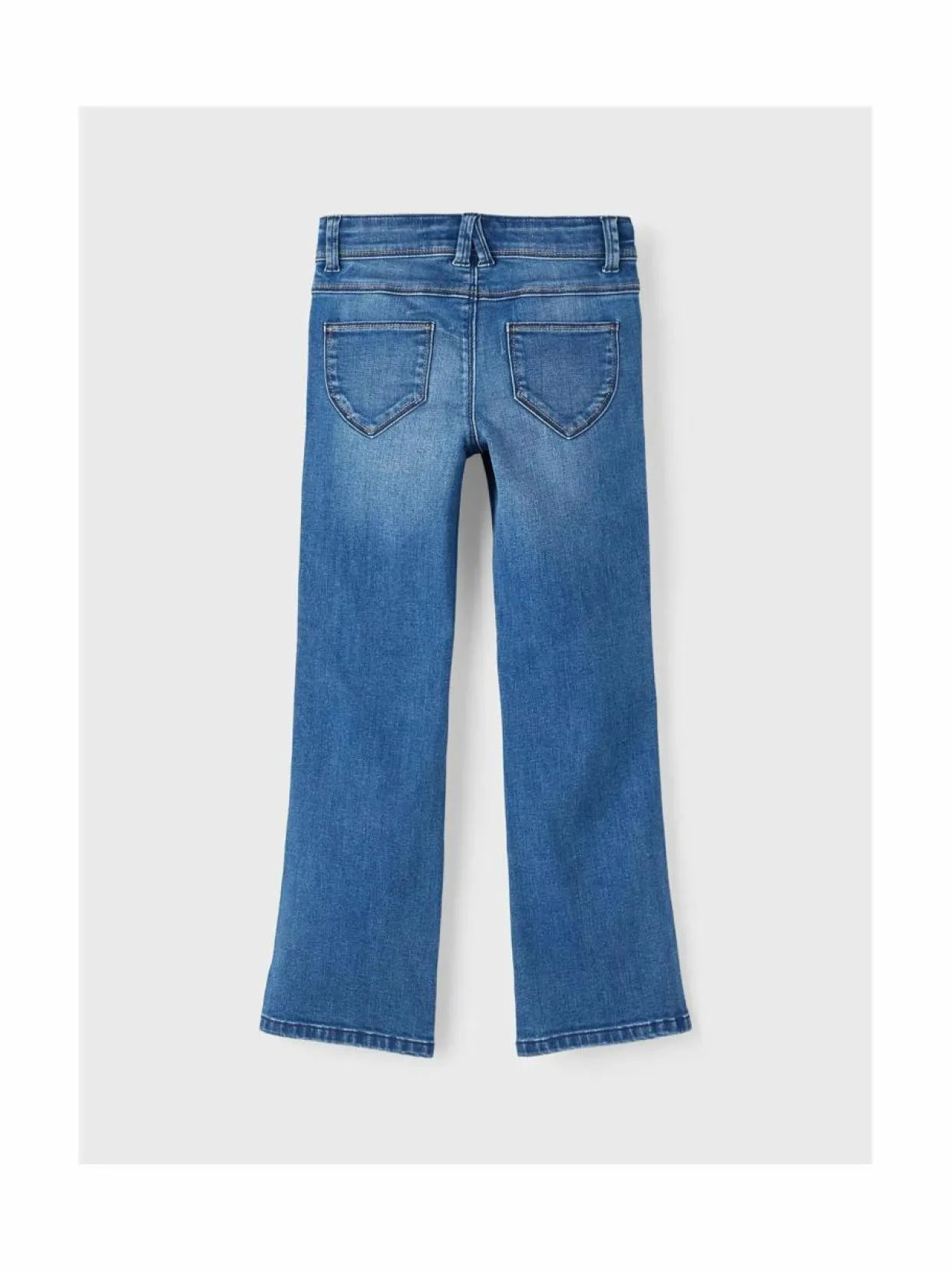 Nämä lasten farkut ovat Boot cut -mallia, jossa on alaspäin hieman levenevät lahkeet. Farkuissa on viisi taskua ja vyölenkit. Kiinnitys on piilovetoketjulla ja hakasella. Vyötärö on sisäpuolelta säädettävä, joka takaa hyvän istuvuuden. Materiaali on joustavaa denimiä.