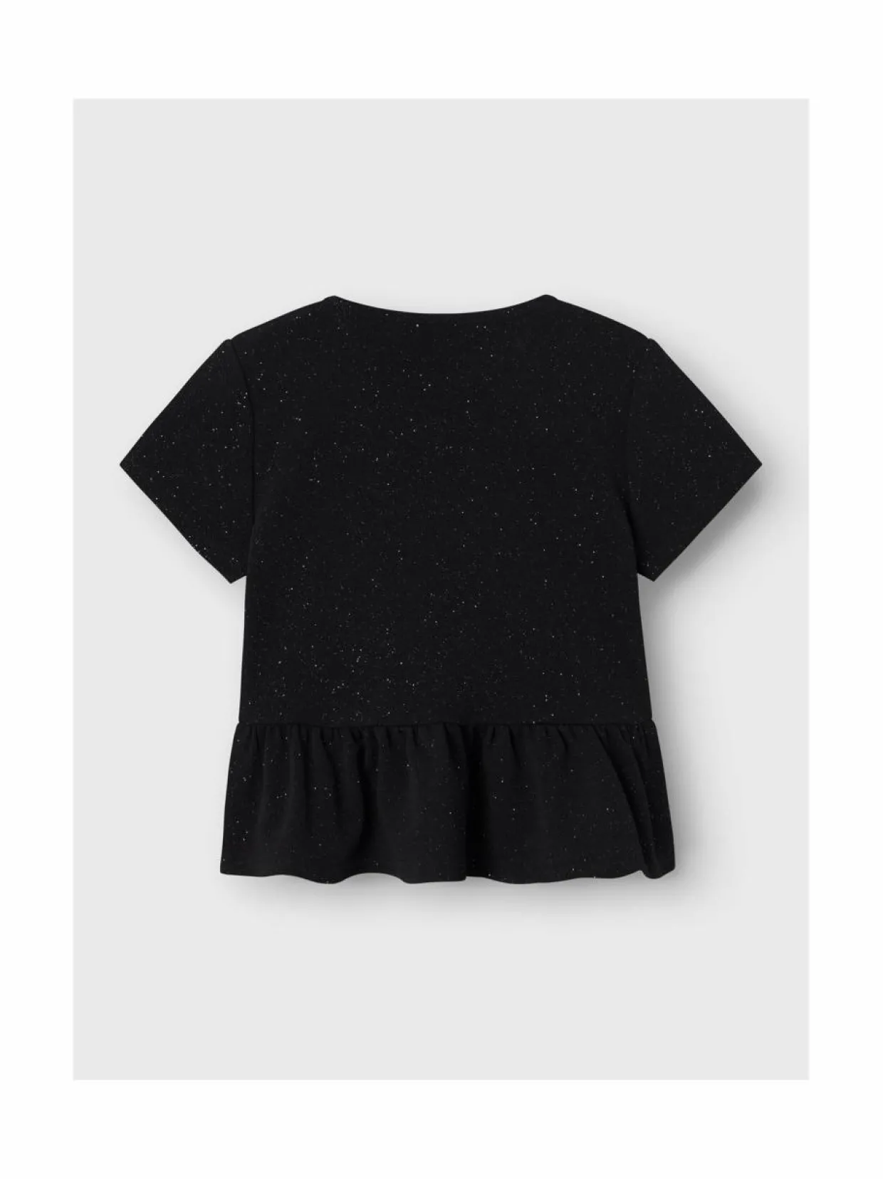 Name Itin joustavassa NkfRoka-paidassa on vivahteikas sävy. Paidassa on pyöreä pääntie ja t-paitahihat. Helmaa somistaa vaakaröyhelö.