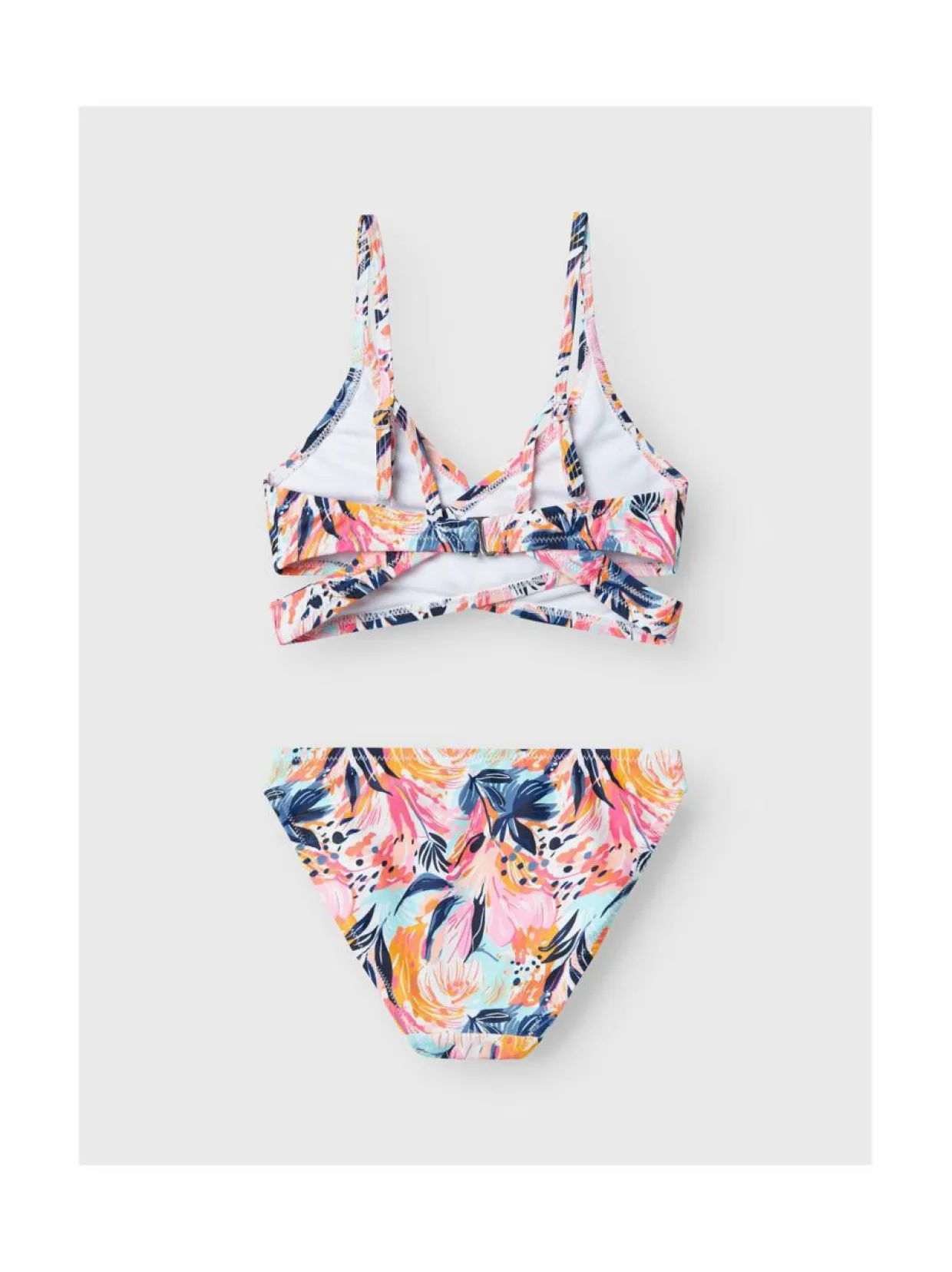 Name It -merkin bikinit ovat valmistettu materiaalista, joka sopii parhaiten uimiseen ja leikkimiseen vedessä. Bikinit on valmistettu pehmeästä ja joustavasta materiaalista, joka antaa mukavan istuvuuden. Bikiniyläosassa on tyylikäs ja moderni muotoilu, ja se on varustettu säädettävillä olkaimilla. Bikinihousut on istuvuudeltaan normaali klassinen ja ne on yksiväridet. Bikinin materiaali sisältää vähintään 50 % kierrätettyä polyesteriä.