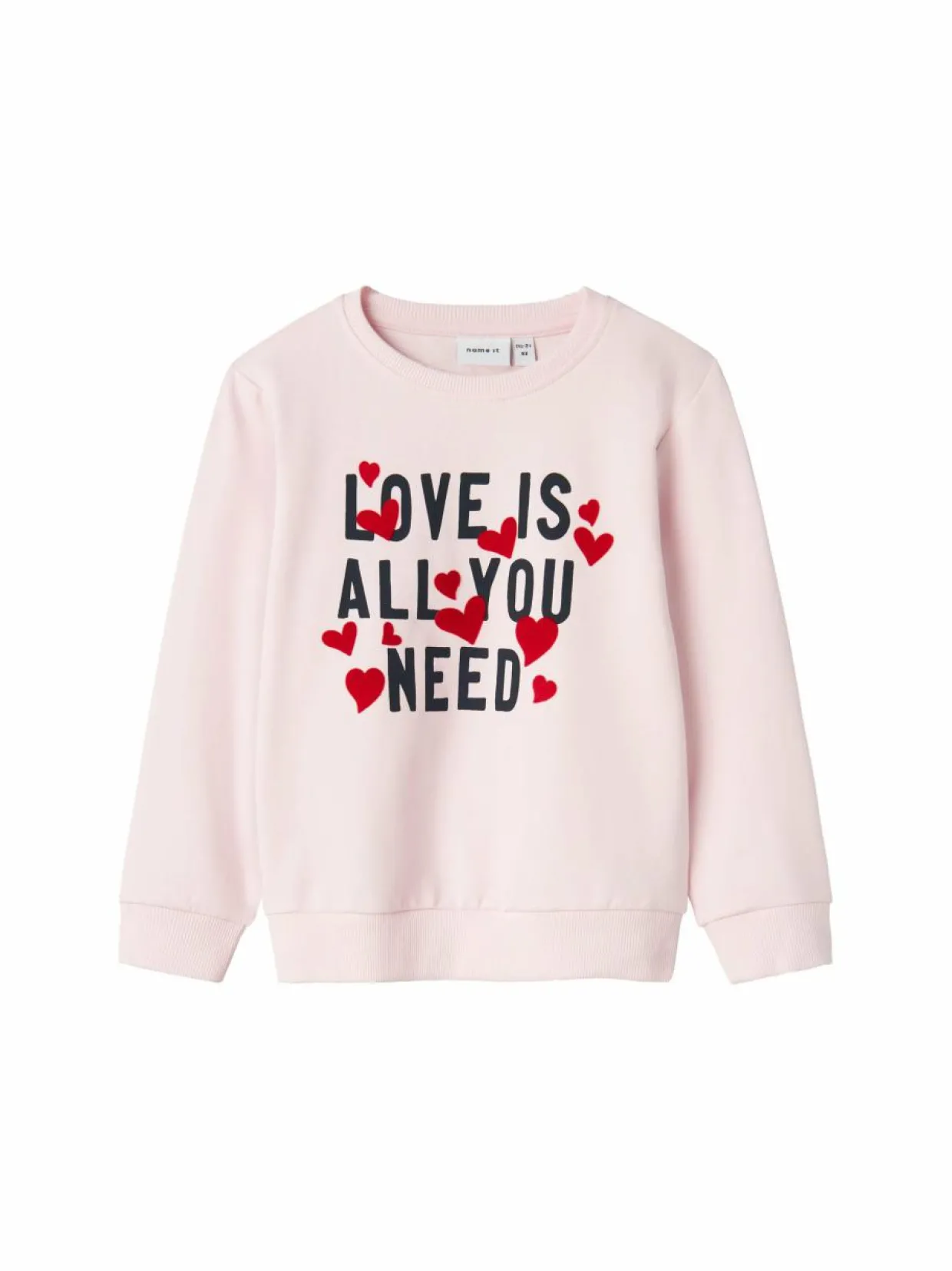 NAME IT NmfDcare -collegepaita tuo iloa ja lämpöä arkeen iloisella tekstiprintillään. Pehmeä puuvillakangas tuntuu miellyttävältä ihoa vasten, ja resorit hihansuissa ja helmassa pitävät paidan istuvuuden hyvänä koko päivän ajan. Tämä pitkähihainen college sopii mainiosti monenlaisiin tilanteisiin ja tuo asuun ripauksen positiivisuutta.