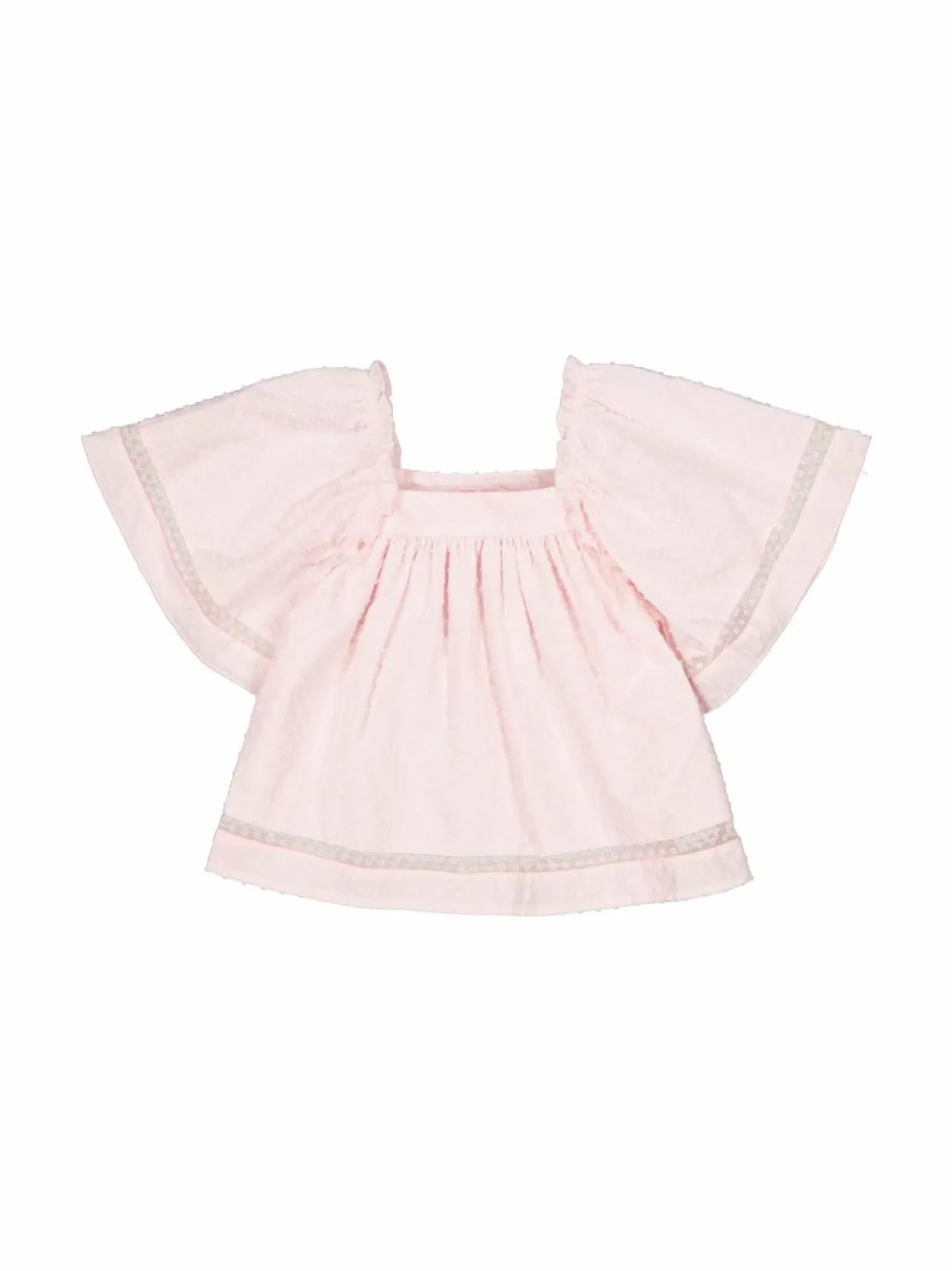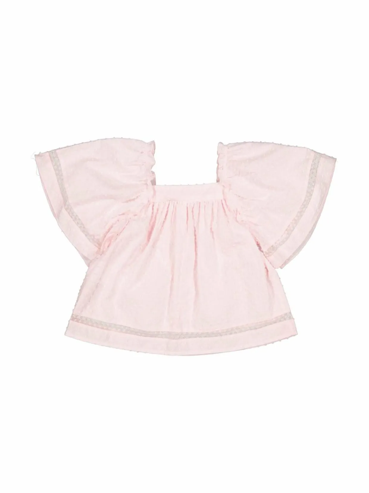 Name It -merkin suloinen NmfFatidias-röyhelöpaita on valmistettu pehmeästä puuvillasta ja siinä on kaunis, ilmava istuvuus. Mitoitus on väljä sekä lyhyt ja se on viimeistelty pitsiyksityiskohdilla hihoissa sekä helmassa. Paidan puuvillamateriaali on luonnollinen ja hengittävä, joka sopii erinomaisesti lapsille. Tämä paita sopii monien eri alaosien kanssa yhdistettäväksi, joka lisää sen monikäyttöisyyttä.