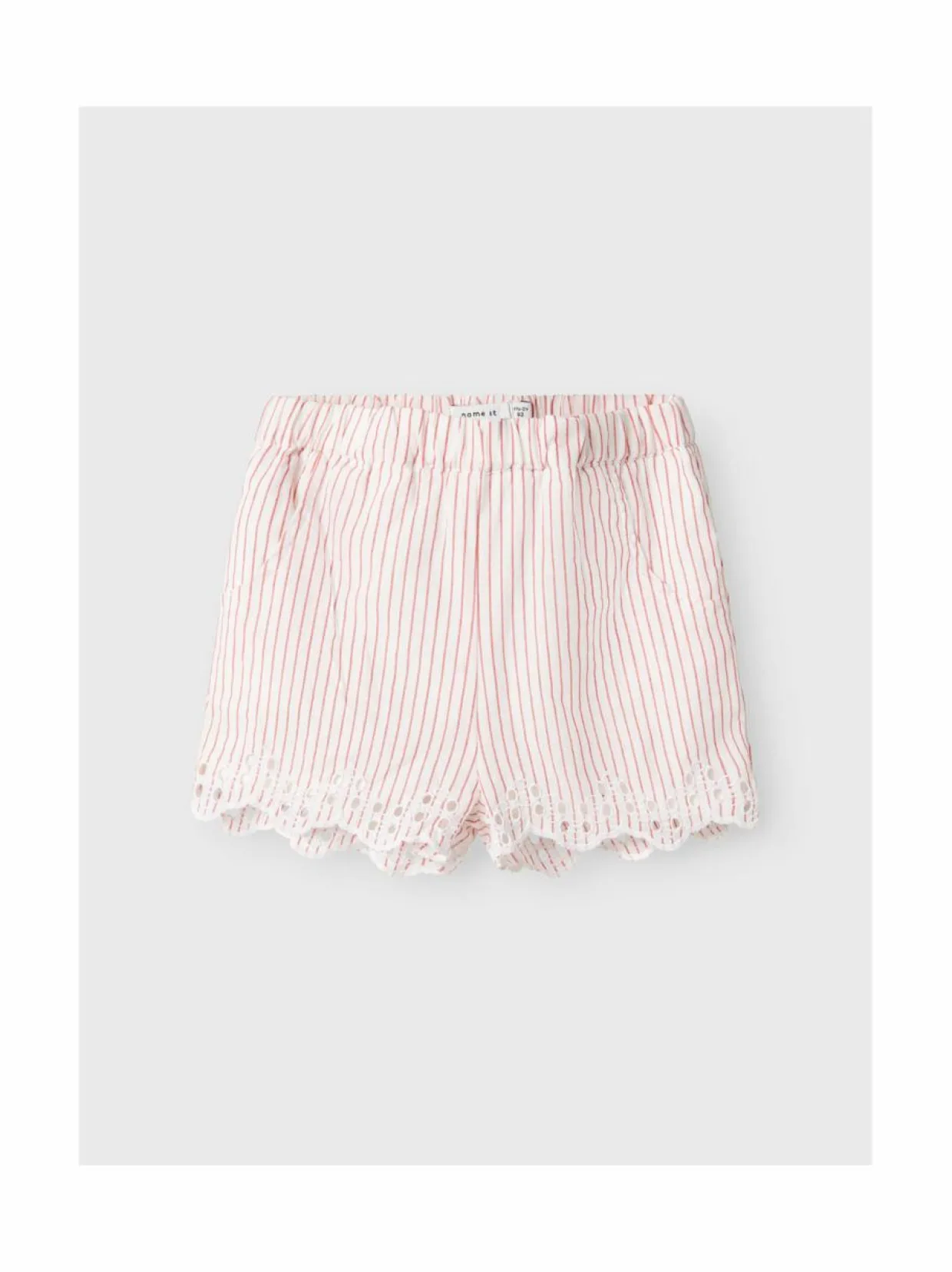 Nämä Name It -merkin shortsit ovat valmistettu pehmeästä puuvillasta. Shortsit ovat mukavat ja hengittävät, ja niissä on kaunis pitsi reunus. Shortsit ovat täydellinen valinta vaikka lämpimiin kesäpäiviin tai matkalle. Puuvilla on luonnollinen materiaali, joka on pehmeä ja hengittävä. Se on myös kestävä ja helppohoitoinen. Puuvilla on hyvä valinta vaatteille, joita käytetään paljon ja jotka altistuvat kulumiselle.