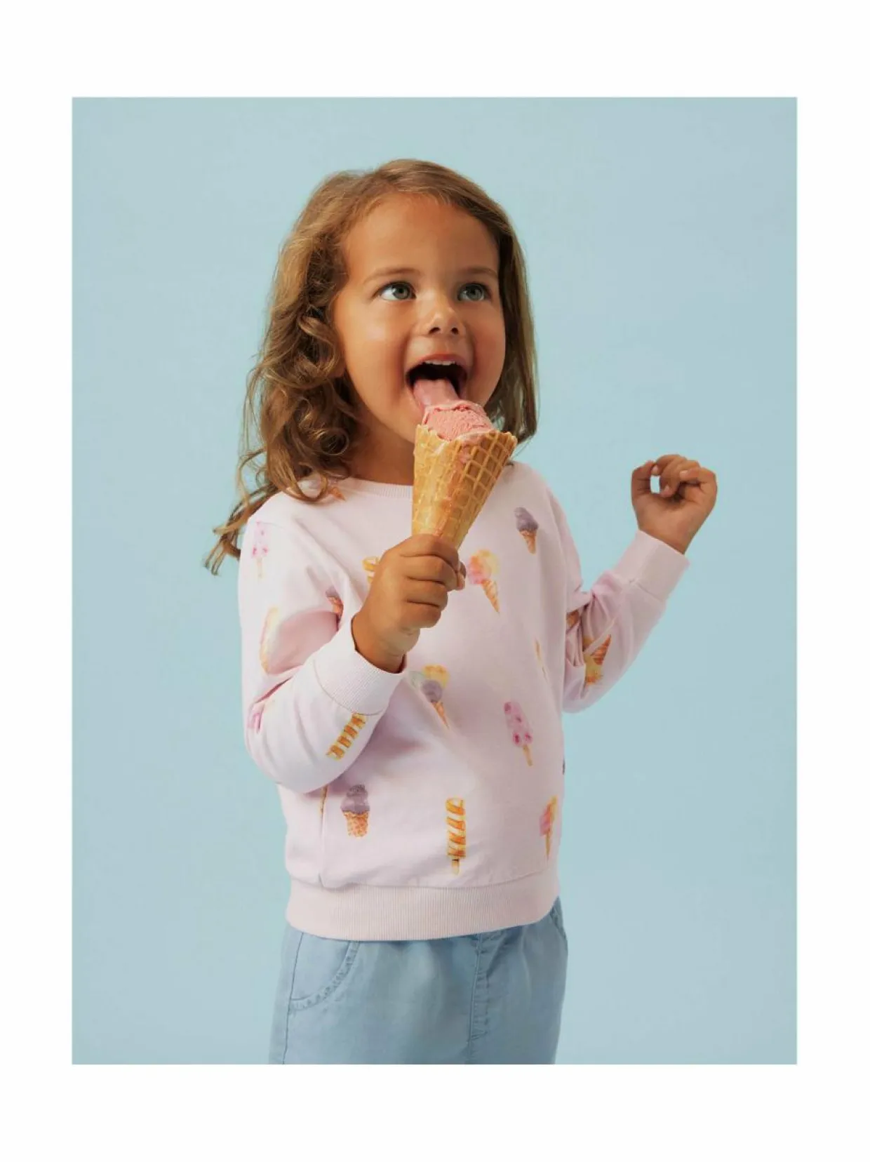 Pirteä collegepaita, jossa on pehmeä, miellyttävä pinta. Paidassa on suloinen kuviointi, joka luo leikkisän herkullisen ilmeen. Se on suunniteltu mukavuutta ajatellen, ja sen istuvuus on rento. Valmistettu pehmeästä ja hengittävästä materiaalista, joka tuntuu miellyttävältä ihoa vasten. Paidassa on klassinen pyöreä pääntie ja hihansuut, jotka viimeistelevät ilmeen.