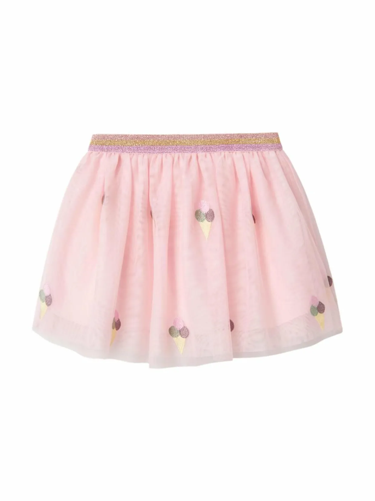 Tämä ihastuttava tyllihame sopii niin arkipukeutumiseen kuin juhliin ja siinä on kimaltava sekä joustava vyötärönauha. Hameessa on herkulliset jäätelökuvioinnit kerroksellisessa helmassa, joka tuo iloa ja väriä asuun. Tämä tyllihame on täydellinen valinta jokapäiväiseen käyttöön tai juhlaan, joka tekee siitä monikäyttöisen.