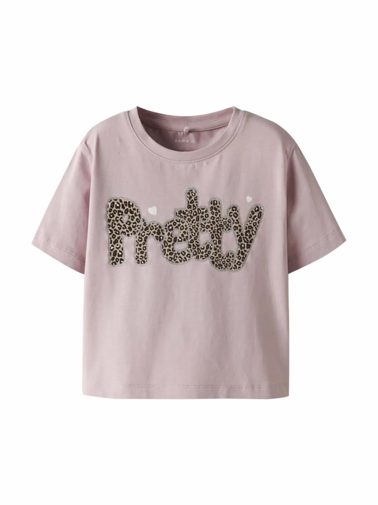 Name It -merkin ihastuttava t-paita, jossa on leikkisä Pretty-teksti, jossa on leopardikuviointi. Klassinen malli, jossa on lyhyet hihat ja pyöreä pääntie. Valmistettu pehmeästä ja hengittävästä puuvillasta, joka tuntuu miellyttävältä iholla. Täydellinen valinta jokapäiväiseen käyttöön tai juhlavampaan tilaisuuteen.