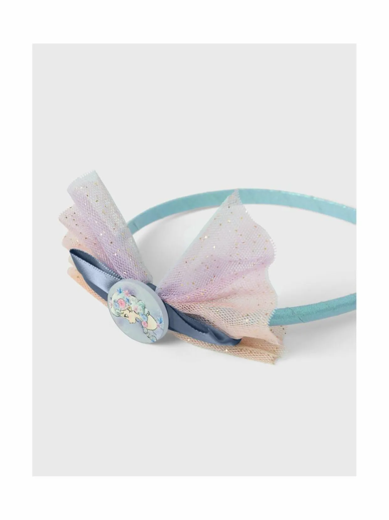 Frozen – Huurteinen seikkailu animaatioelokuvasta tunnettu prinsessa koristelee name it merkin hiuspantaa. Panta on koristeltu rusetilla ja tyllikankaalla. Hiuspanta sopii monenlaisiin kampauksiin.