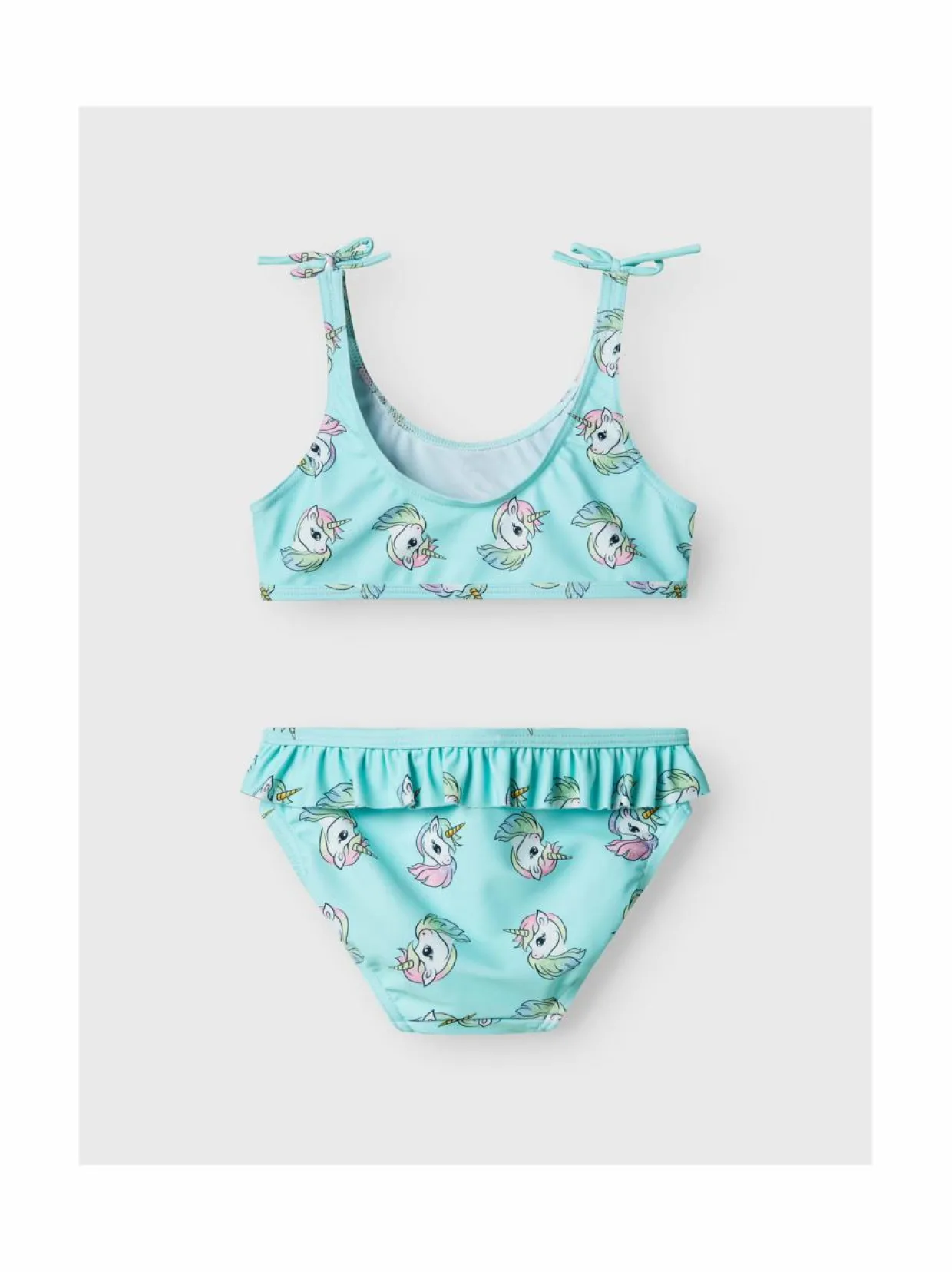 Lasten kuvioidut bikinit on valmistettu joustavasta kierrätetystä polyesteristä, joka on nopeasti kuivuva, kestävä ja helppohoitoinen. Settiin kuuluu bikinitoppi ja bikinihousut.
