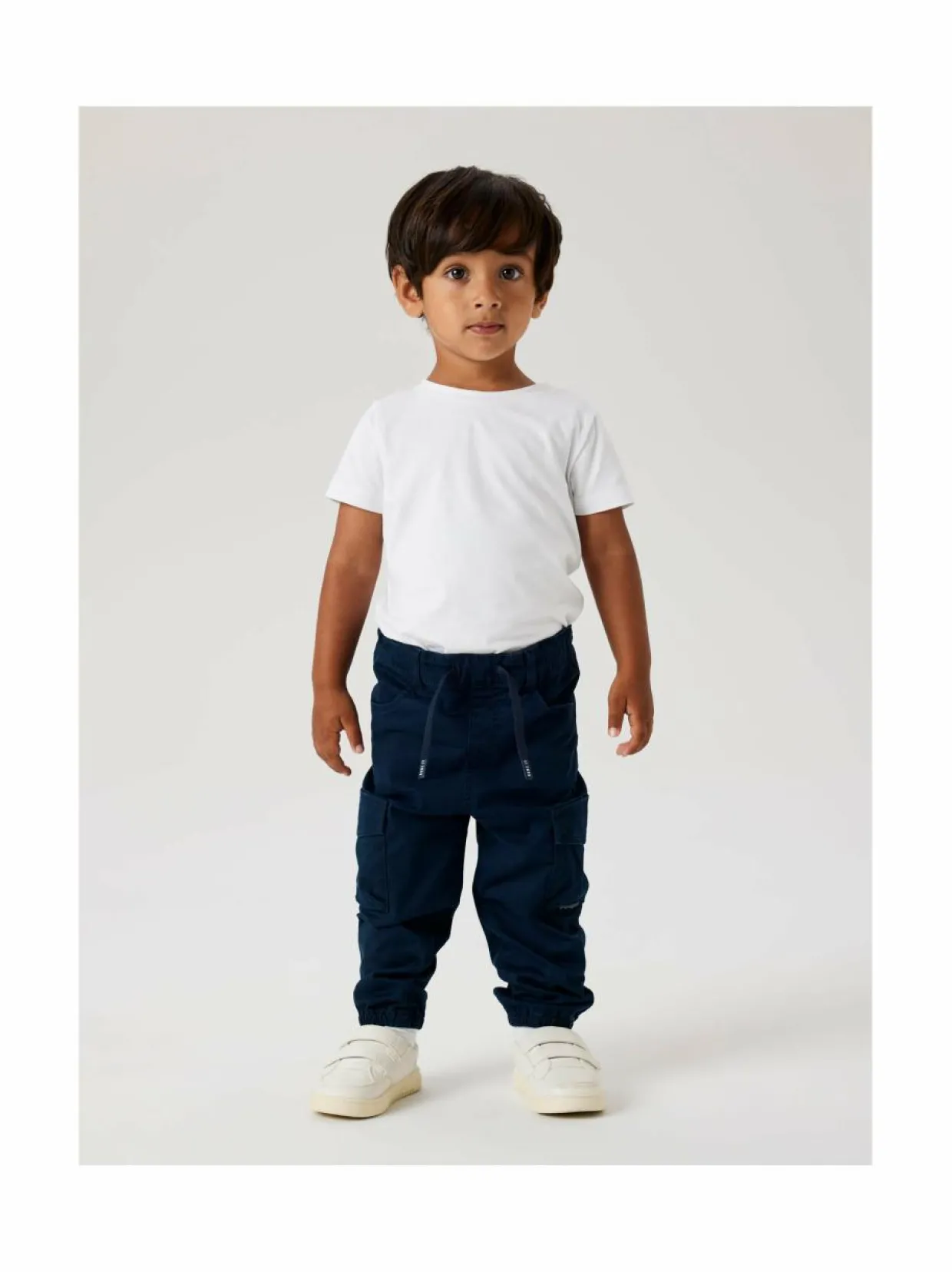 Name It -merkin cargohousut sopivat hyvin arkeen ja ulkoiluun. Housut on valmistettu pehmeästä puuvillakankaasta, jossa on hieman elastaania tuomaan joustavuutta ja liikkumavapautta. Cargotyyliin kuuluvat reilut reisitaskut ovat kätevät pienten aarteiden säilytykseen, ja joustava vyötärö sekä lahkeensuut varmistavat hyvän istuvuuden.