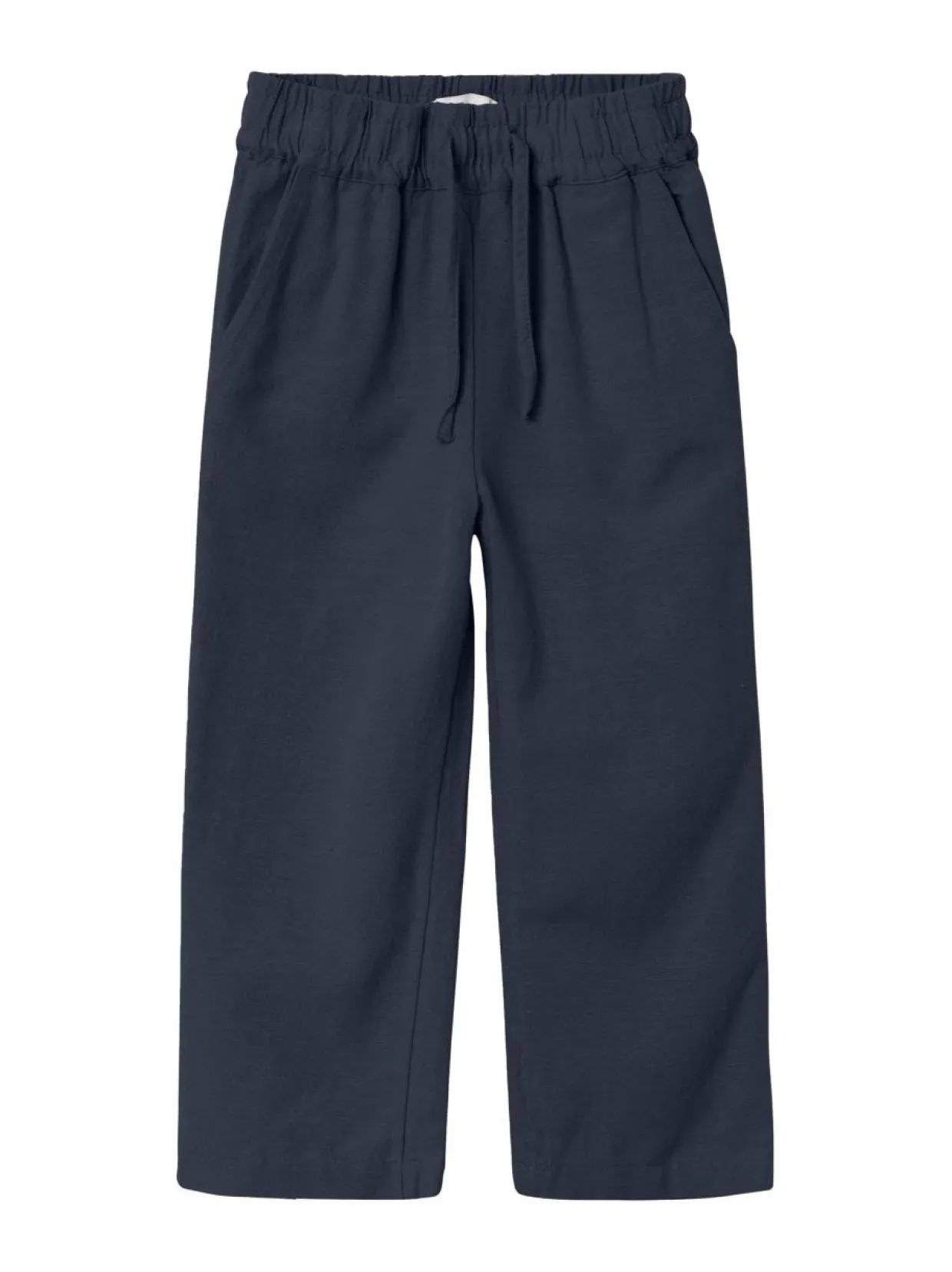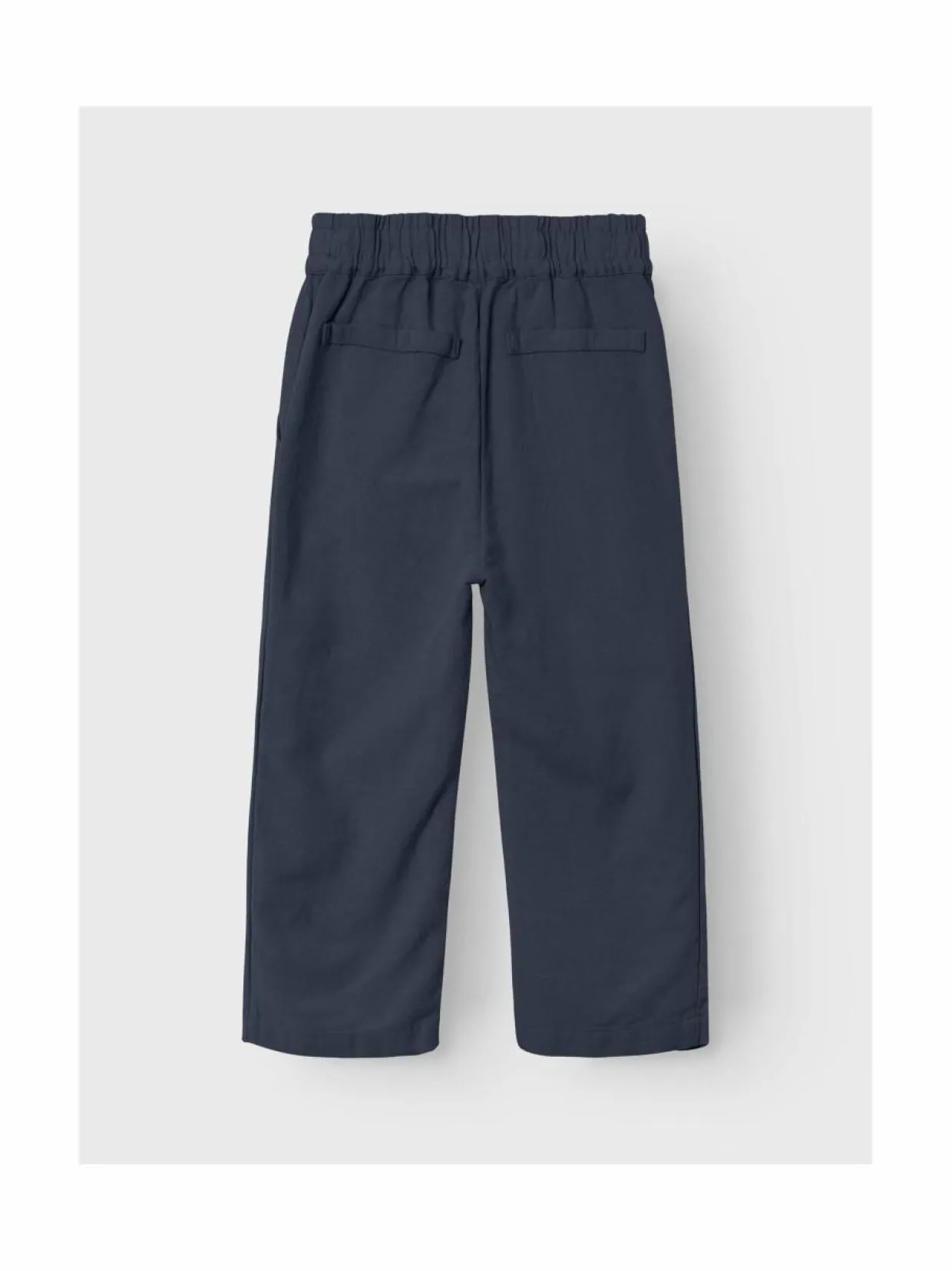 Pue lapsesi mukavasti ja tyylikkäästi näihin trendikkäisiin ja pehmeisiin housuihin. Kankaassa on kevyesti teksturoitu pinta, luoden siistin ja klassisen ilmeen. Housujen valmistuksessa on käytetty vastuullista Lenzing Ecovero -viskoosia, ihoystävällistä puuvillaa sekä kestävää pellavaa. Rennoissa housuissa on joustava ja säädettävä vyötärö kiinteällä kiristysnyörillä ja sivuilla avotaskut.