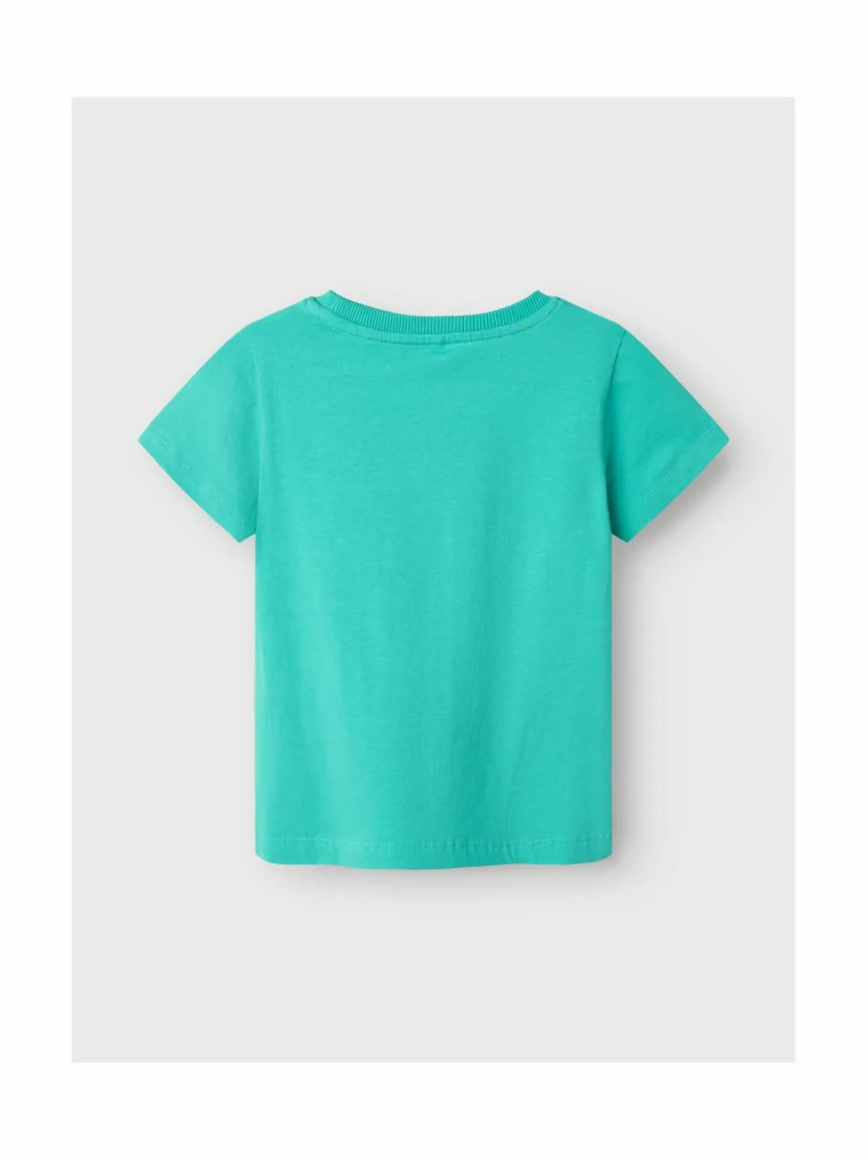 Suoralinjainen t-paita printtikuviolla. Name it merkkinen trikoopaita on valmistettu pehmeästä ja joustavasta puuvillasta. Tuote sisältää vähintään 50 % luomupuuvillaa.