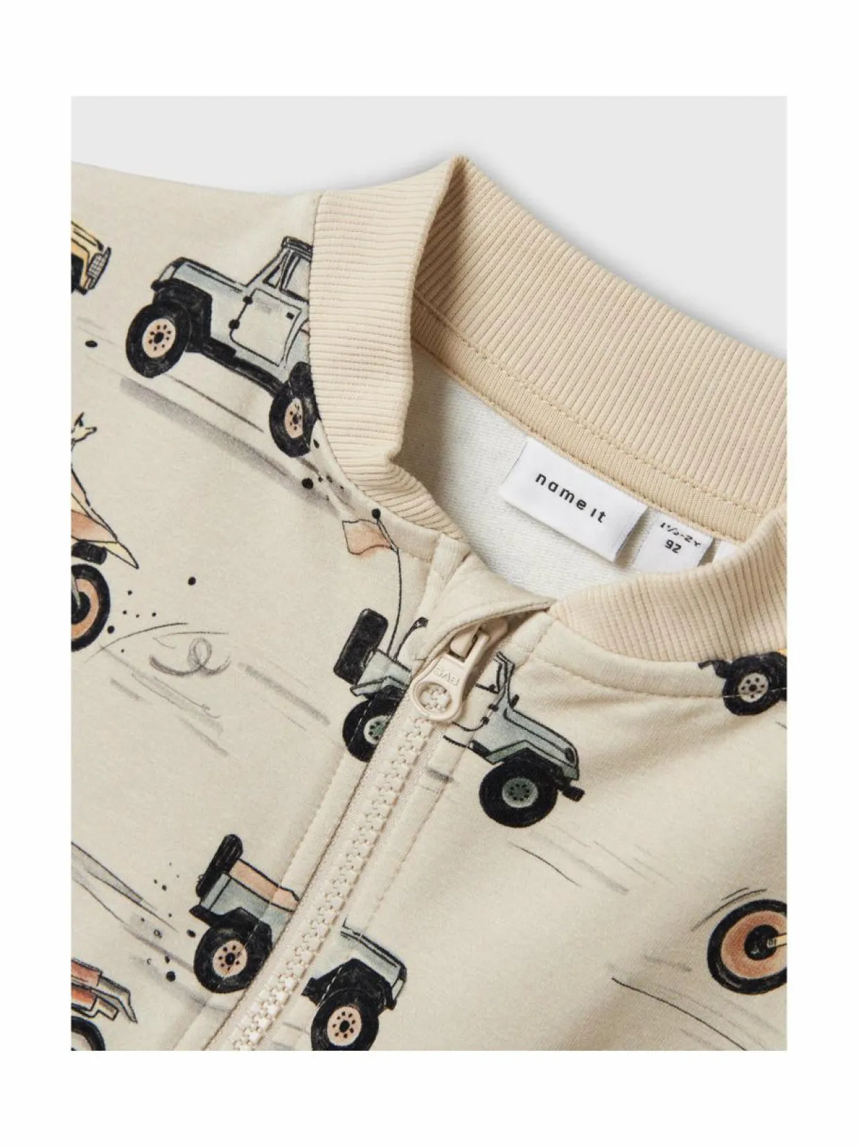 Lasten mukava collegetakki Name It tuotemerkiltä. Vetoketjullinen collegepaita on mukavan joustavaa luomupuuvillaa. Pitkähihaisessa collegetakissa on pyöreä resoripääntie ja vetoketjukiinnitys leukasuojalla. Joustoresorit löytyvät myös helmasta ja hihansuista.