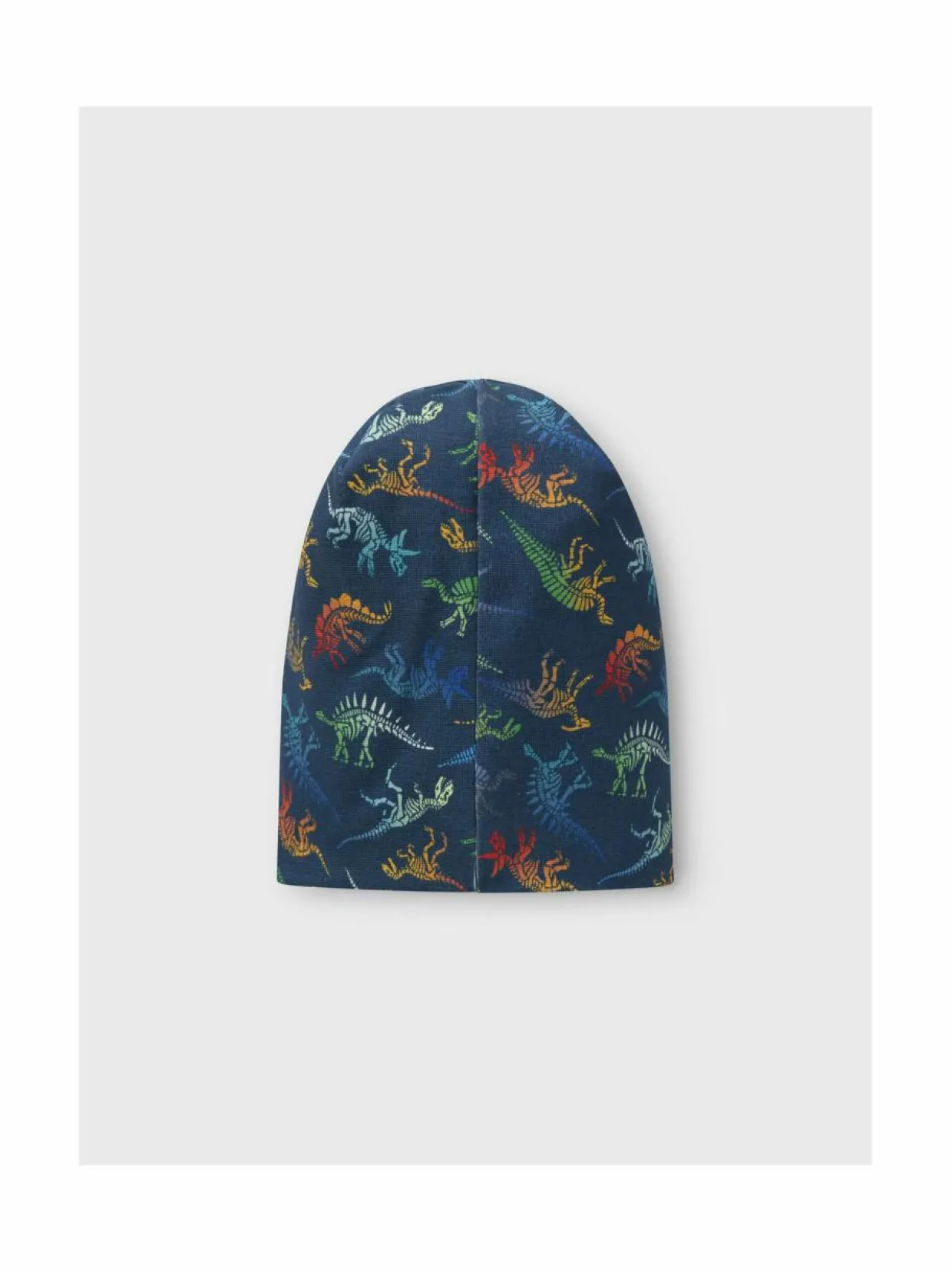Name it merkin pipo on valmistettu pääosin pehmeästä sekä joustavasta luomupuuvillasta, joka sopii täydellisesti lapsen herkälle iholle. Pipo on kauttaaltaan koristeltu dinokuosilla.