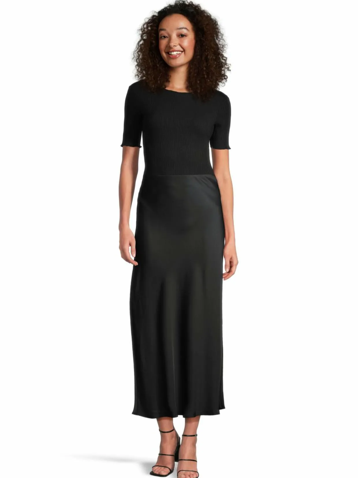 ESSENTIALS by Stockmannin Nora-hame edustaa minimalistista muotoilua parhaimmillaan. Hameen yksinkertaisen tyylikäs ja ajaton leikkaus sopii niin arkeen kuin juhlaankin. Hohtava satiinikangas laskeutuu kauniisti ja tekee selkeälinjaisesta hameesta katseenvangitsijan. Vyötärölinja on joustava ja sivulta löytyy myös vetoketjusulku. Valikoimasta löydät myös yhteensopivan Neha-satiinipuseron.