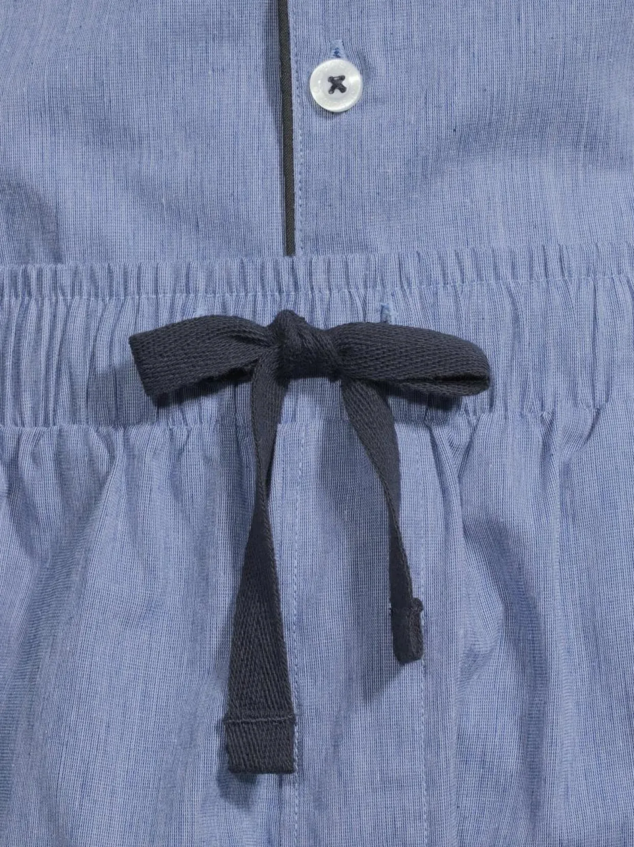 Cap Hornin Norman-pyjama on valmistettu kevyestä ja hengittävästä luomupuuvillapopliinista. Pitkähihaisessa pyjamapaidassa on klassinen kaulus, nappilista ja rintatasku, jossa sävyyn sopiva logobrodeeraus. Pyjamahousuissa on joustava vyötärö kiristysnyörillä ja sivutaskut.