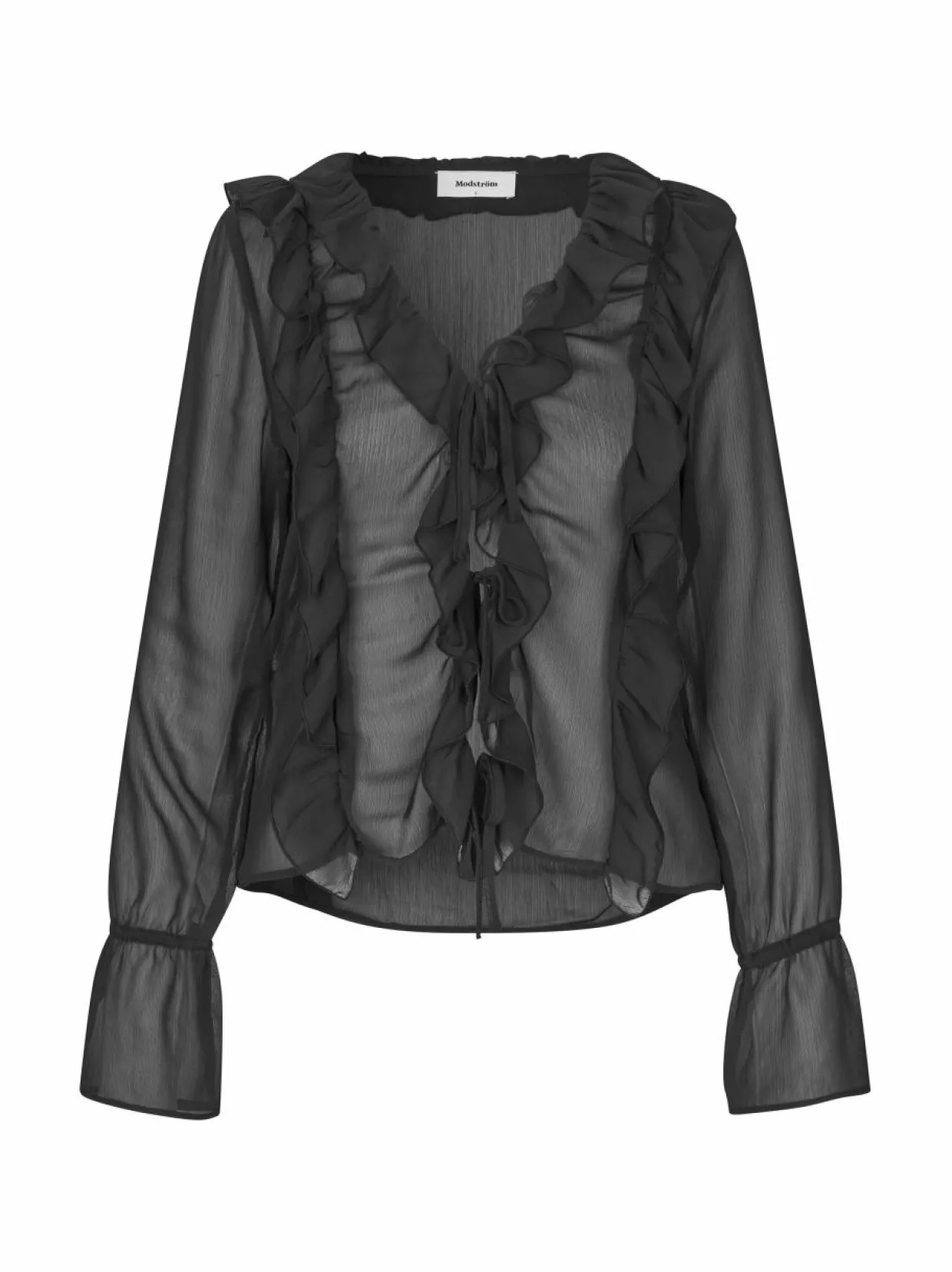 Materiaali100 % polyesteri Hoito-ohjeetHienopesu. Noudata valmistajan hoito-ohjeita. ValmistusmaaKiina Väri07090 BLACK Avainsanatfrillapusero, läpikuultava paita, kierrätys, pusero, juhlapusero, Modström, tyllipaita