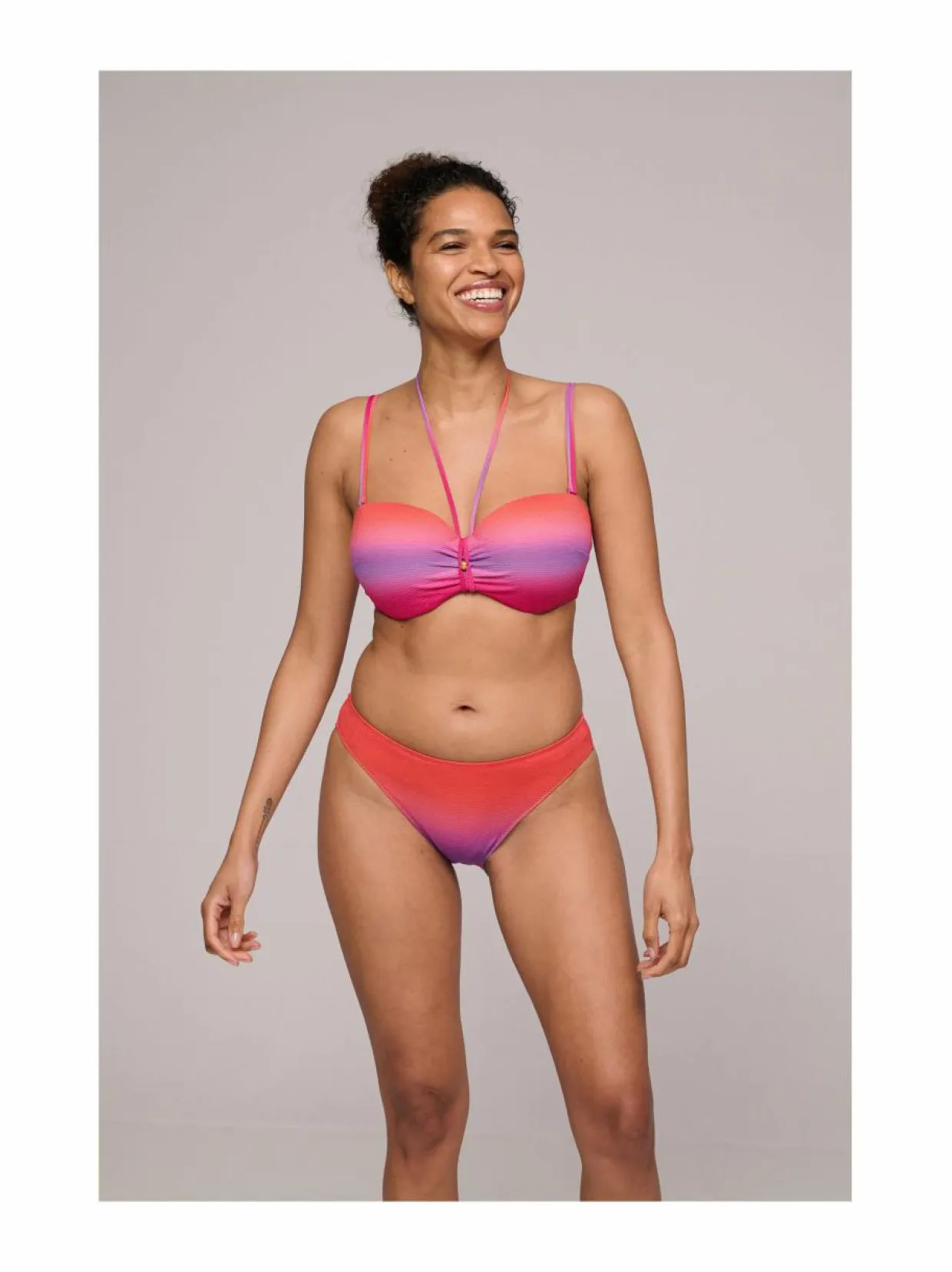 Marie Jo:n värikkäät Nusa Dua -bikinihousut on valmistettu joustavasta ja nopeasti kuivuvasta kankaasta, jossa on hennosti kiiltävä pinta. Bikinialaosan jalantie on korkea ja vyötärö keskikorkea.