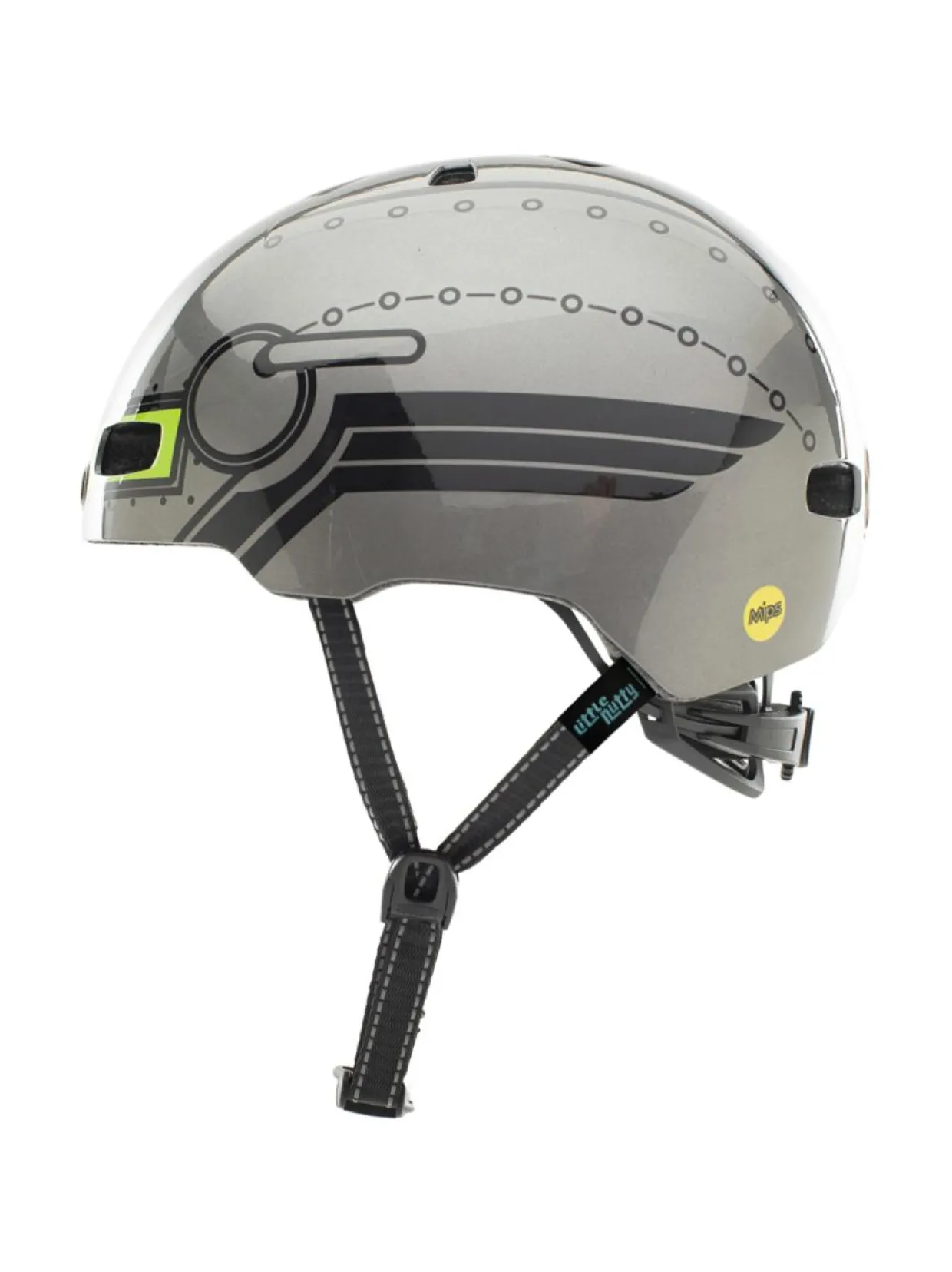 Little Nutty pyöräilykypärässä on 11 muotoiltua ilmanvaihtoaukkoa täydelliseen jäähdytykseen, kestävä ruiskuvalettu ABS-kuori, jonka sisällä on Crumple Zone EPS-sisus, sekä 100% MIPS ja 360 asteen heijastavuus logojen, heijastavien hihnojen ja sovitusjärjestelmän ansiosta. Kypärässä on näppärä ja vaivaton Snap & Go Fidlock magneettinen leukahihnan lukitusjärjestelmä. Irrotettavat 3-osaiset tyynypehmusteet varmistavat turvallisuuden, yksilöllisen istuvuuden ja mukavuuden. Kypärän takana on korkeussäädettävä takakiristin ja edessä helposti irrotettava visiiri.