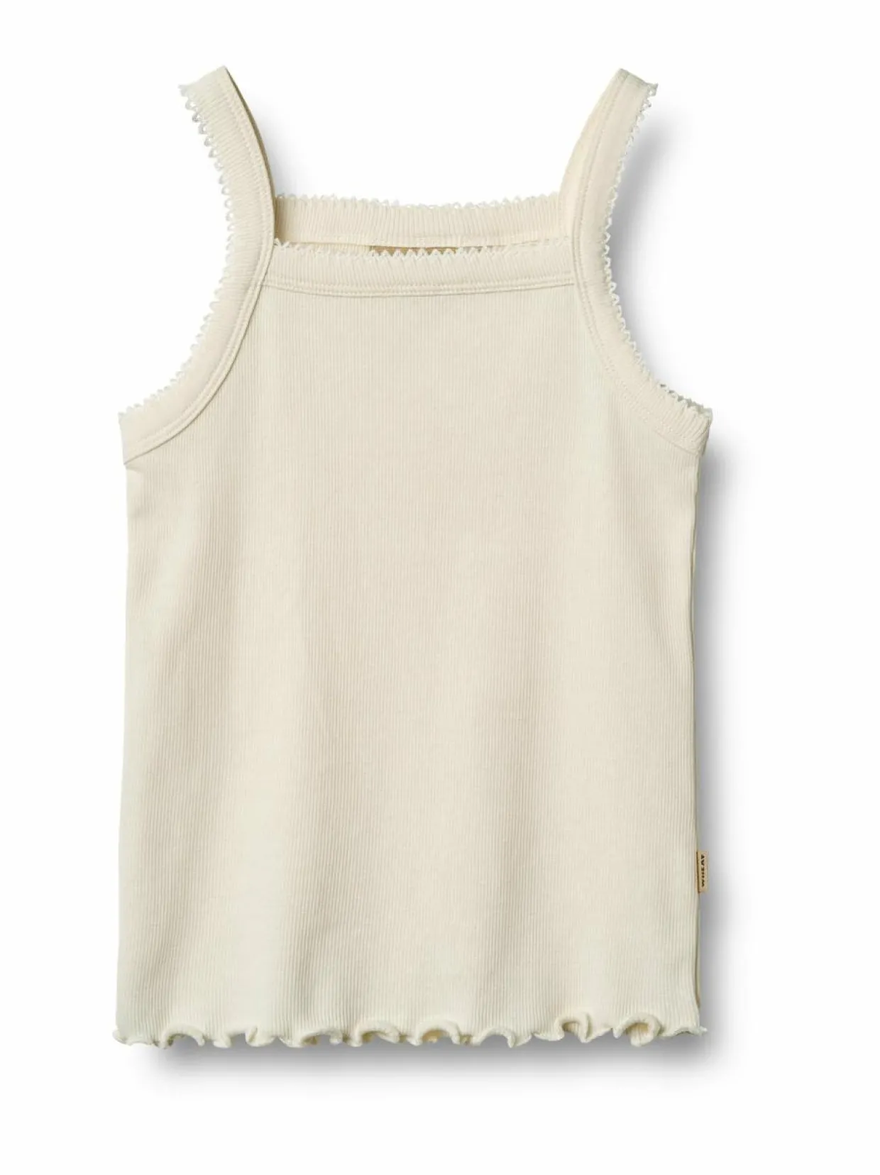 Wheat-merkinOlise-toppi on valmistettu pehmeästä ja mukavasta luomupuuvillasta. Paita on hihaton ja se on kaunis, istuva ja joustava, joka lisää sen monipuolisuutta. Toppi sopii yhdistettäväksi shortsin, housujen tai hameen kanssa.