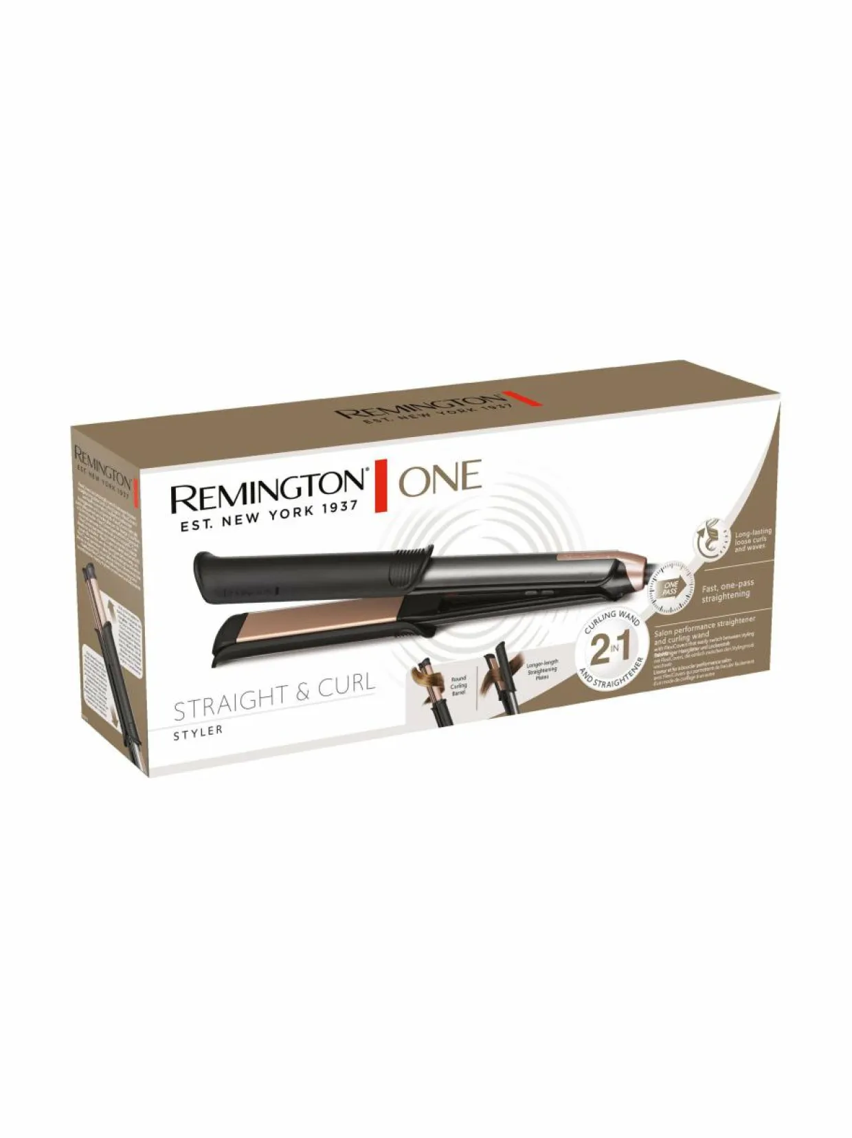 Remington ONE Straight & Curl muotoilurauta on ammattimainen suoristusrauta ja sauvakiharrin YHDESSÄ laitteessa. Voit luoda helposti laineikkaita, kiharia, tai sileitä ja suoria hiustyylejä. Vaihda helposti suoristamisesta kihartamiseen FlexiCovers-suojusten avulla Liu’uta suojukset ylöspäin, poispäin kahvasta ja vapauta kiharrinosan lukitus, jolloin laite siirtyy suoristustilaan ja suoristuslevyt lämpenevät. Lukitse levyt toisiinsa ja liu’uta suojuksia alaspäin kahvaa kohti, kunnes kuulet naksahduksen, jolloin 32 mm:n kiharrinosa paljastuu ja kiharrustila aktivoituu automaattisesti.