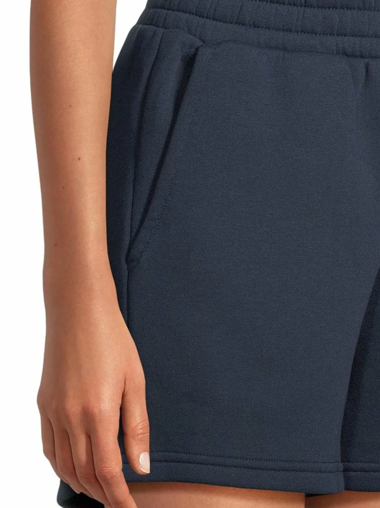 Mukavat shortsit kuntoiluun ja aktiiviseen vapaa-ajan viettoon. Miellyttävä joustovyötärö. Sivuissa viistotaskut ja lahkeessa hillitty logobrodeeraus. Valmistettu luomupuuvillan ja kierrätyspolyesterin materiaaliyhdistelmästä.