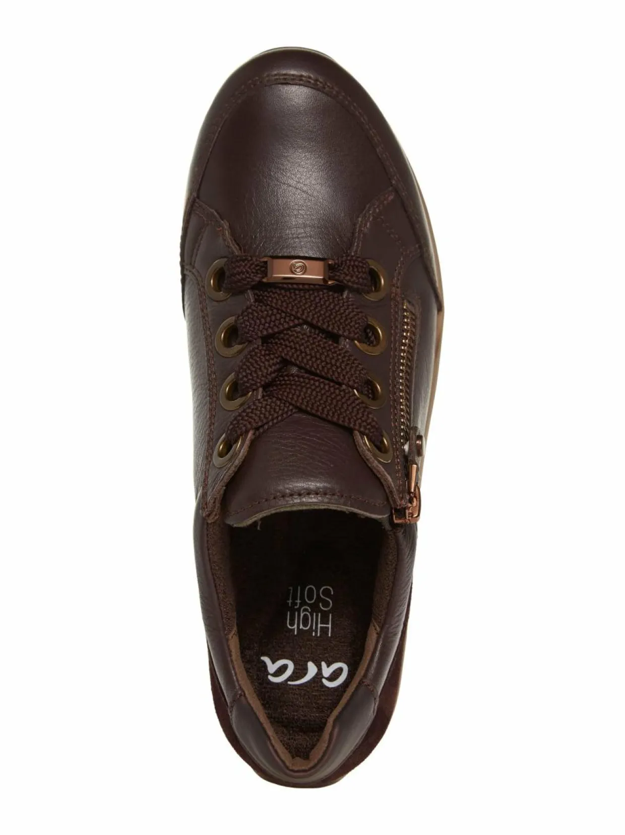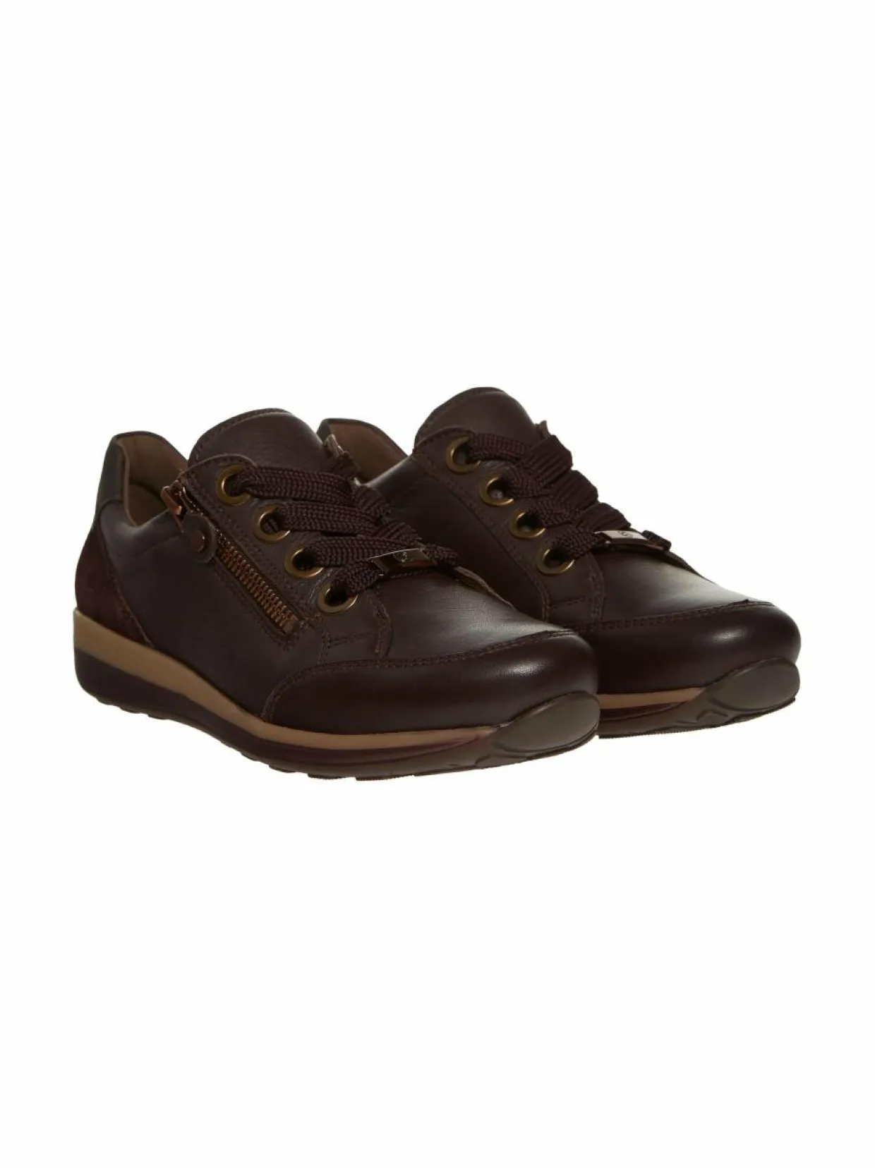 Aran Osaka-nahkasneakerit ovat mukavat kengät kävelyyn. Ulkosyrjällä on pukemista nopeuttava vetoketju. Nauhoilla säädät helposti kenkien istuvuutta. Erittäin pehmeä, irrotettava High Soft -pohjallinen tekee kengistä mukavat jalassa. Naisten UK-koot.