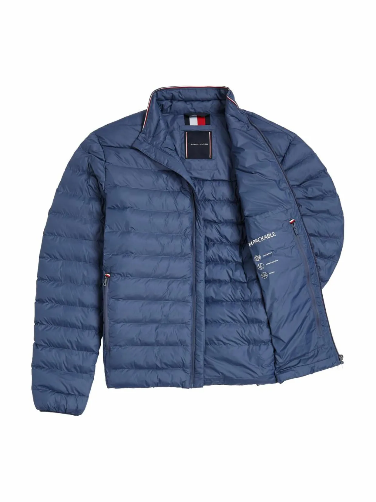 Tommy Hilfigerin kevyt, pakattava takki on valmistettu 100 % kierrätetystä polyamidista. Takissa on pystykaulus, vetoketjusulku ja kaksi sivutaskua. Takki on täytetty synteettisellä täytteellä, joka pitää sinut lämpimänä viileämmällä säällä. Takki on helppo pakata mukanakuljetettavaksi, joten se on täydellinen valinta matkoille. Takin istuvuus on normaali.