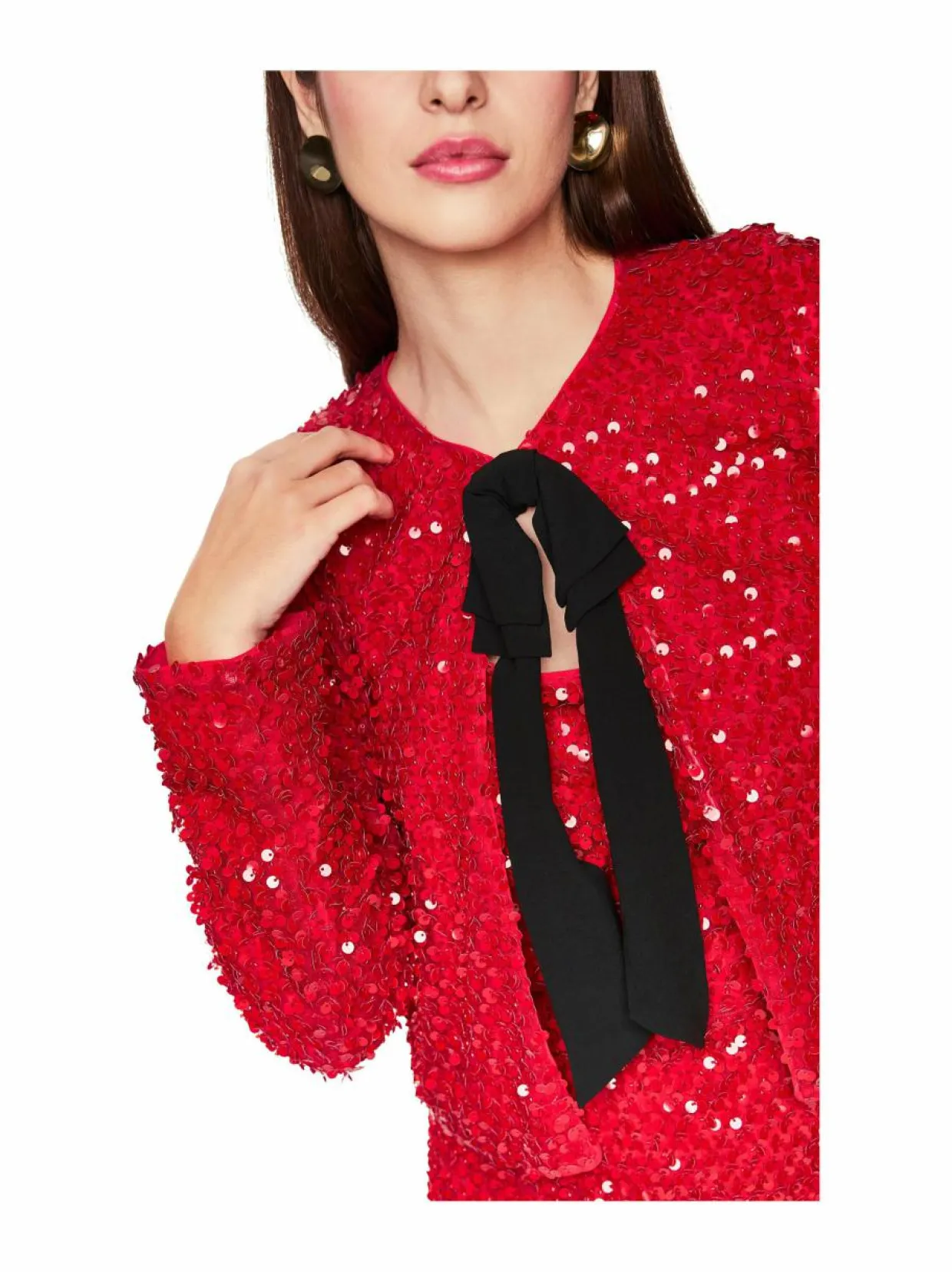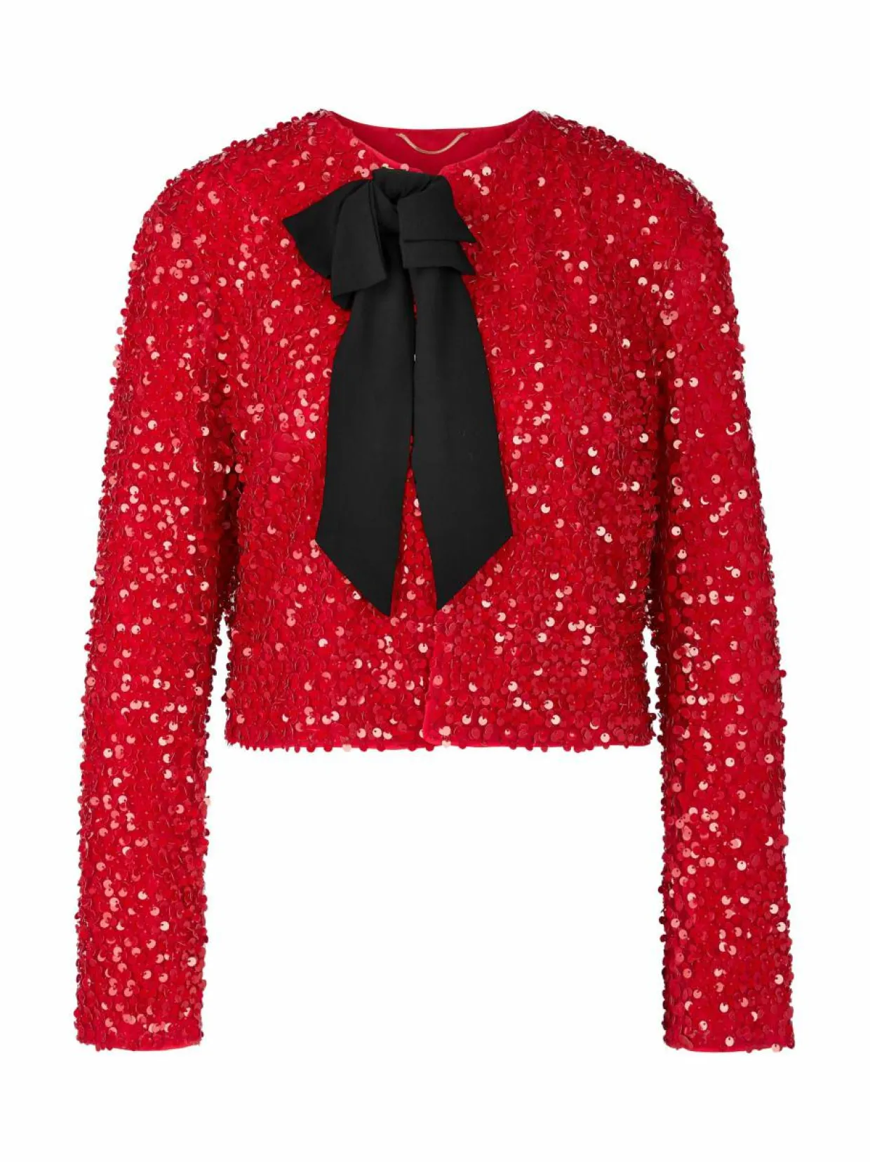Materiaali100 % polyesteri Väri282 RED Avainsanatbleiseri, jakku, paljettijakku, juhlatakki, Marc Cain, kevyt takki, juhlableiseri