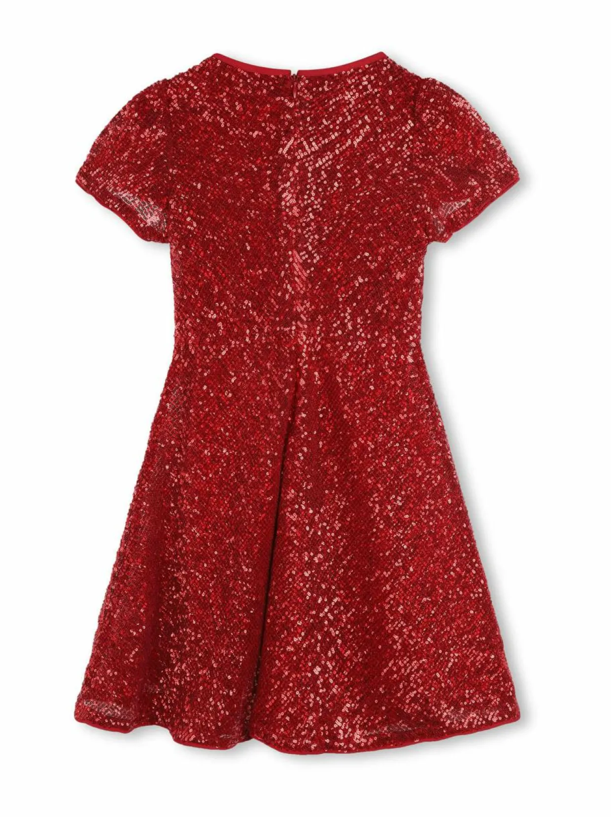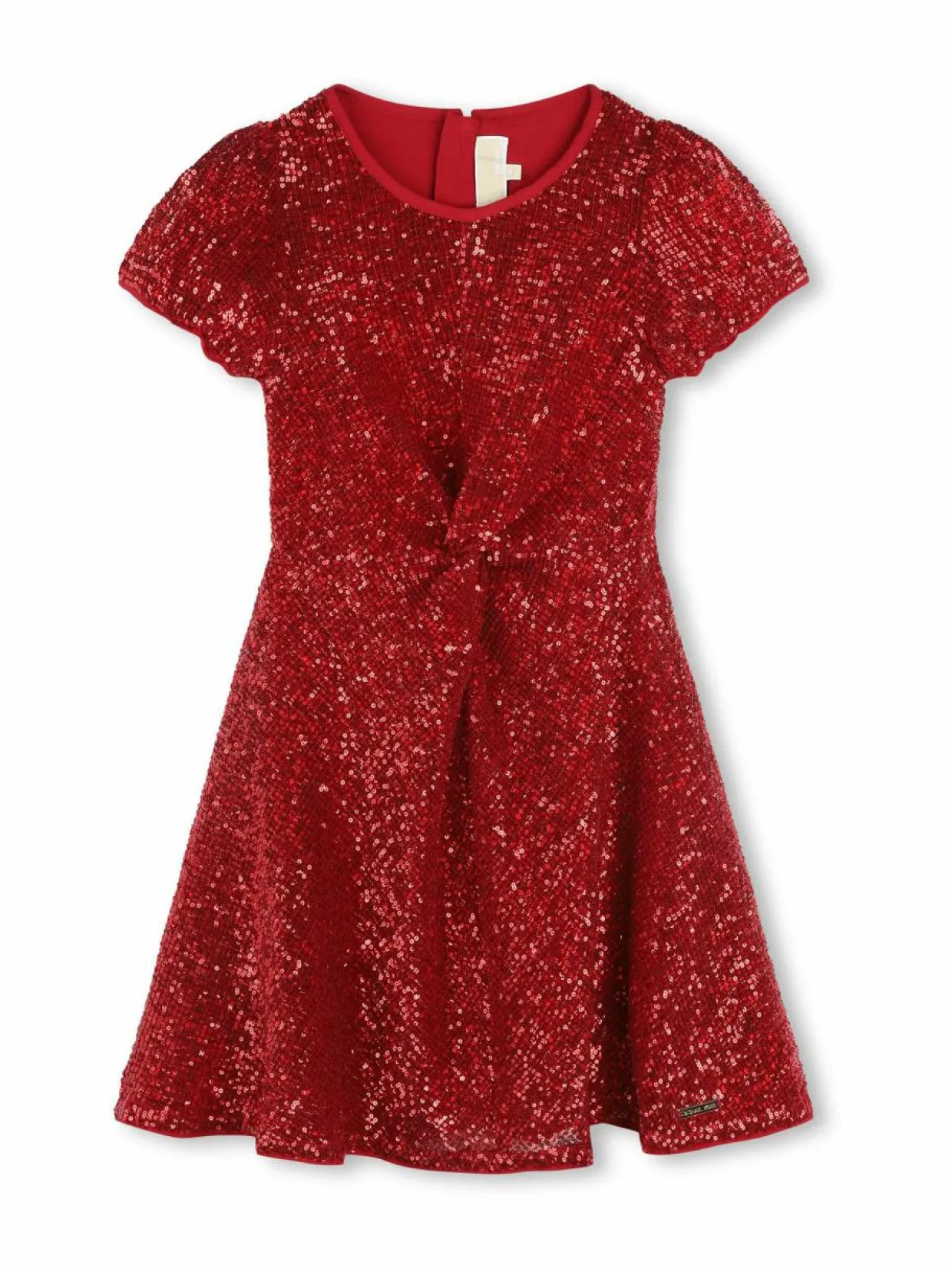 Michael Kors paljettisomisteinen mekko lapsille. Mekossa on edessä koristeellinen solmu ja takana vetoketjukiinnitys. Helmassa on Michael Korsin logo.