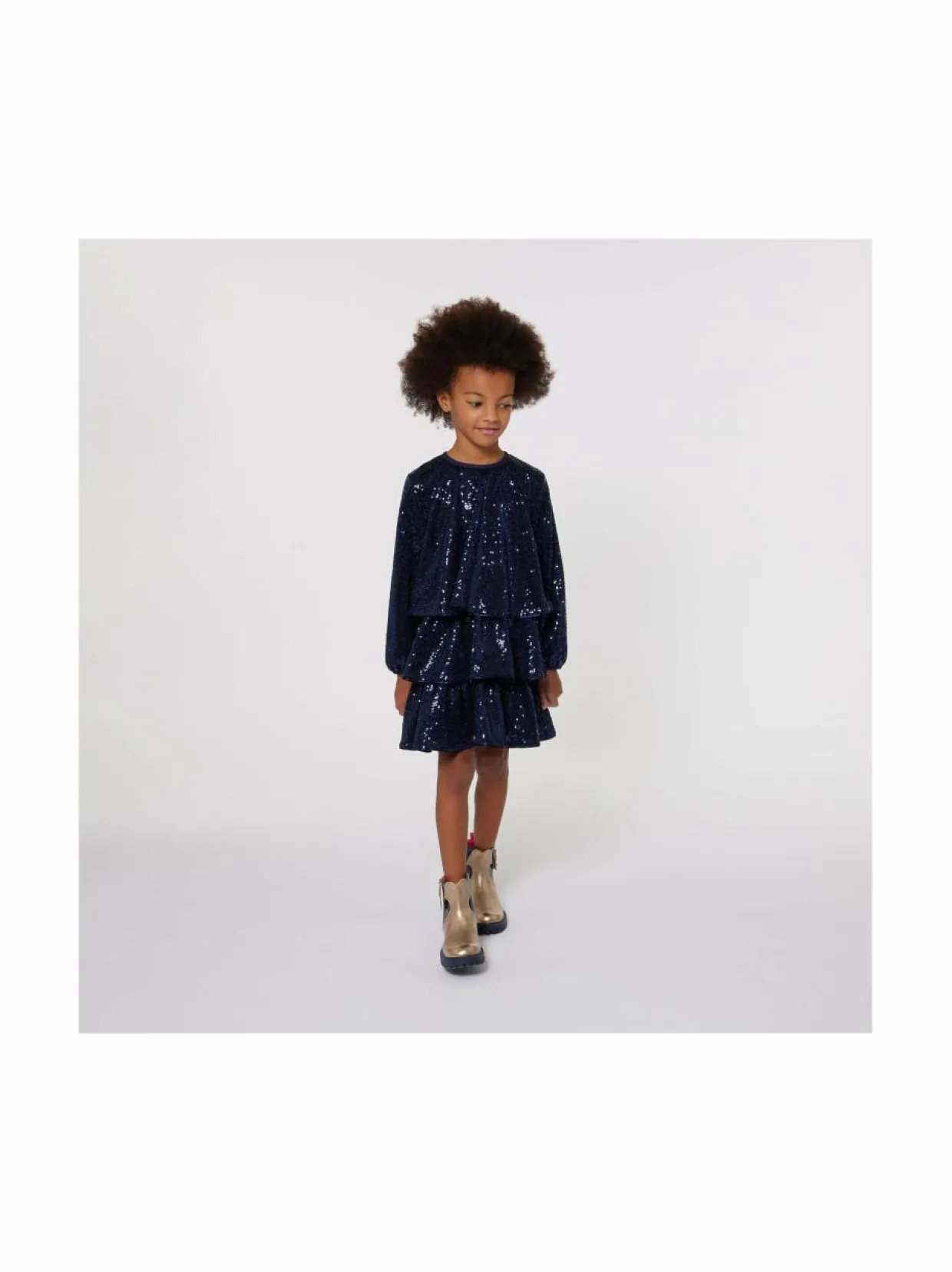Billieblushin näyttävä paljettimekko on täydellinen valinta juhlahetkiin. Mekossa on kerroksittain laskeutuvat röyhelöt, jotka tuovat asuun ilmavuutta ja kaunista liikettä. Koko mekkoa peittävät kimaltelevat paljetit. Selässä oleva nappikiinnitys helpottaa pukemista.