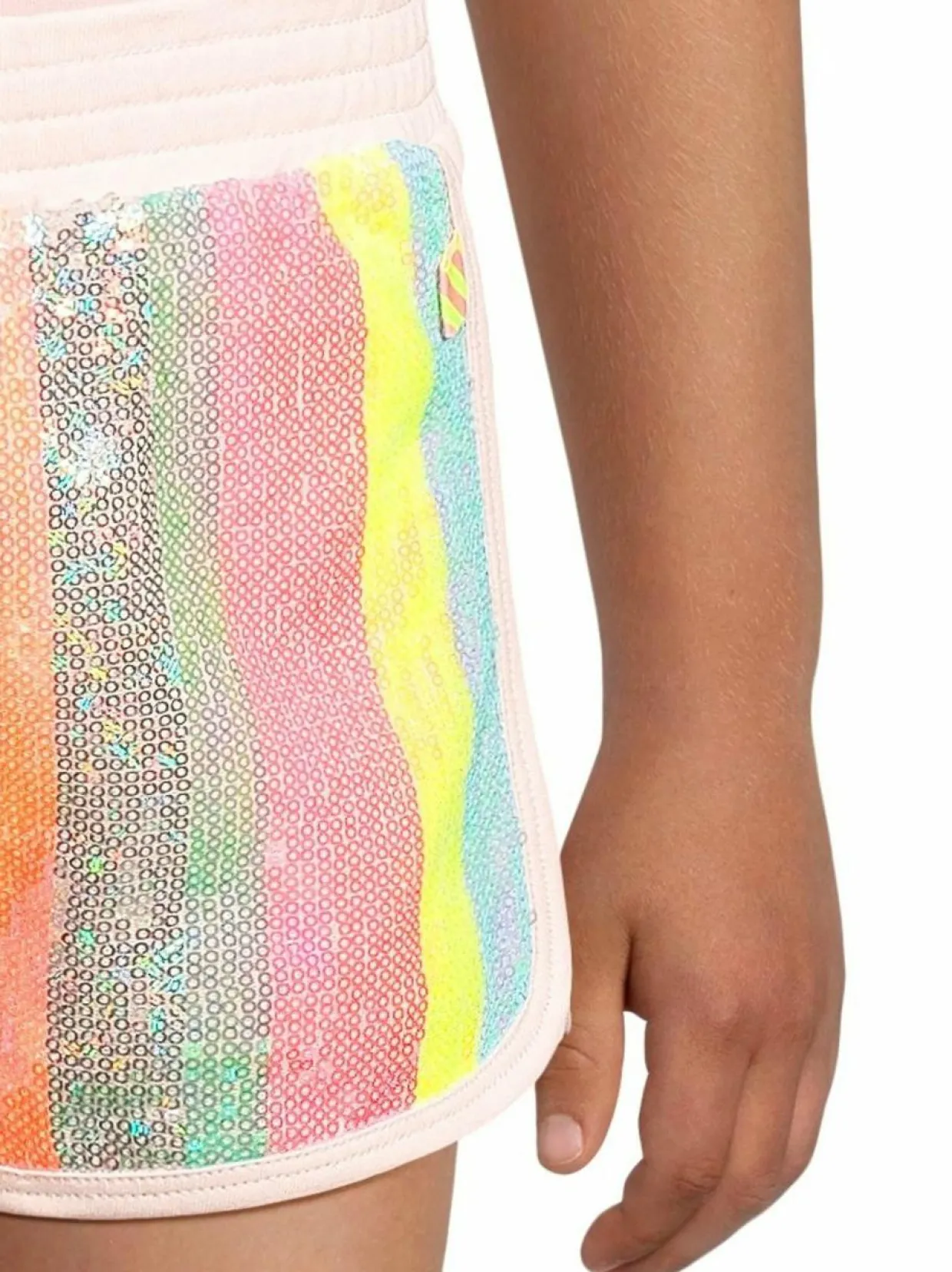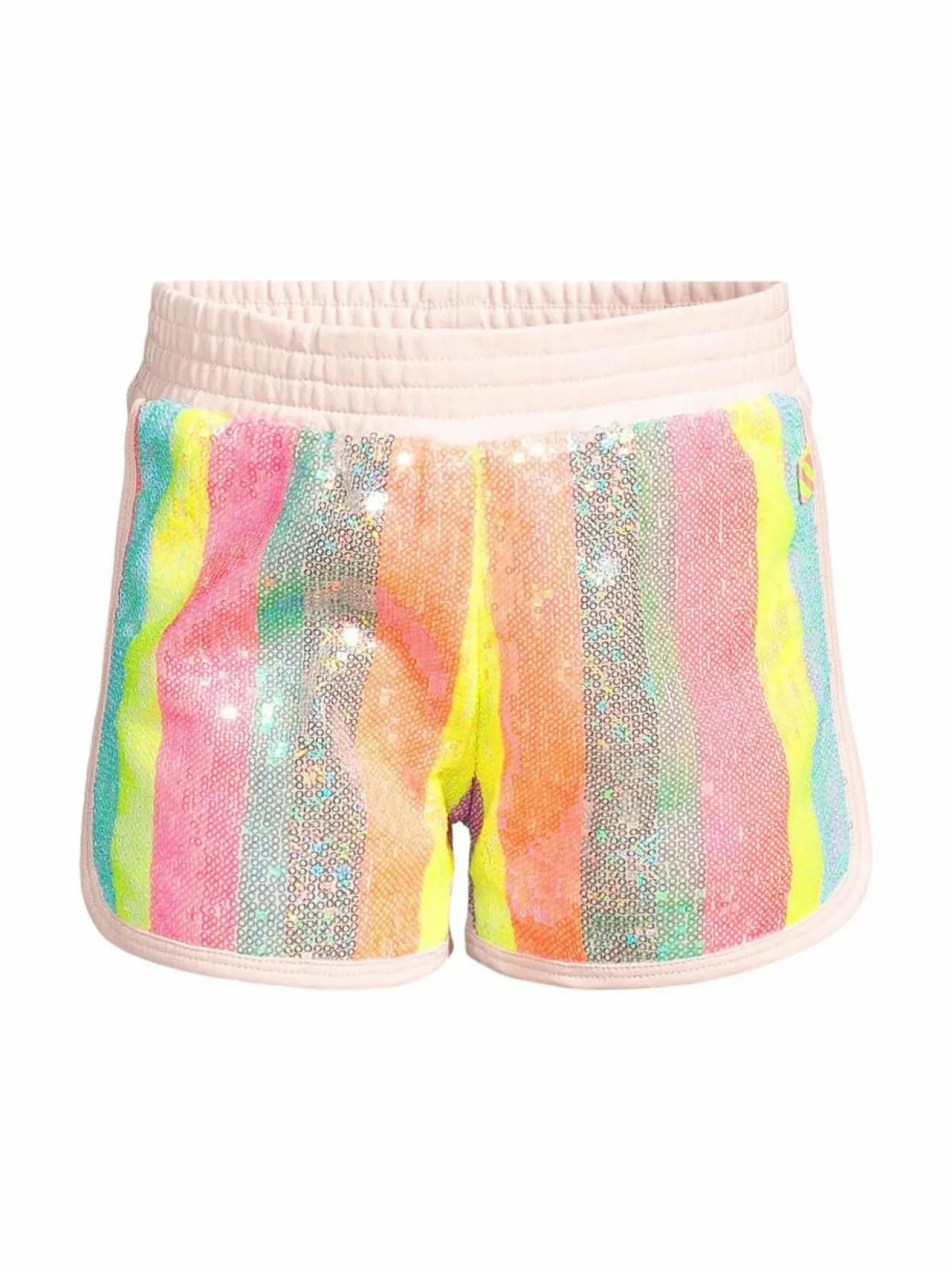 Nämä Billieblushin shortsit on valmistettu pehmeästä ja mukavasta materiaalista. Niissä on kiiltävä ja värikäs paljettikuviointi edessä. Shortsit ovat joustavat ja niissä on vyötäröllä kuminauha. Shortsit sopivat täydellisesti kesäpäiviin ja niissä on mukava liikkua.