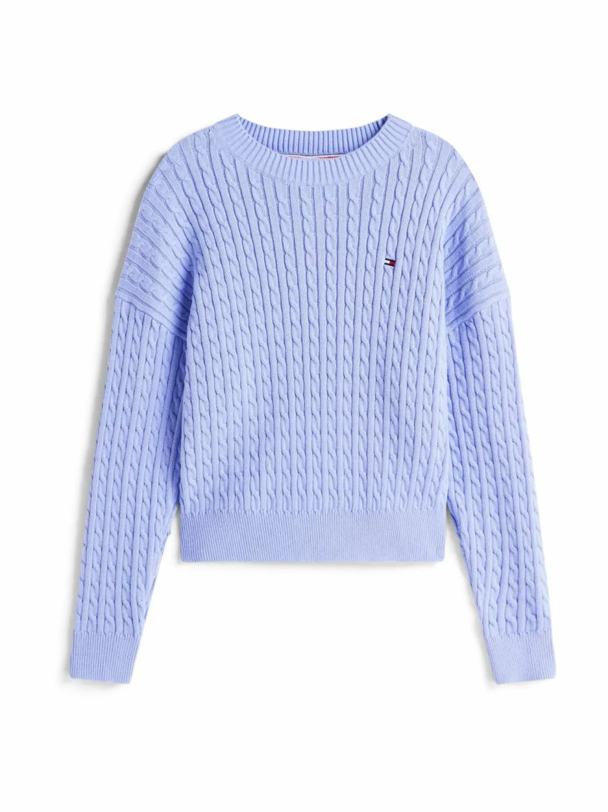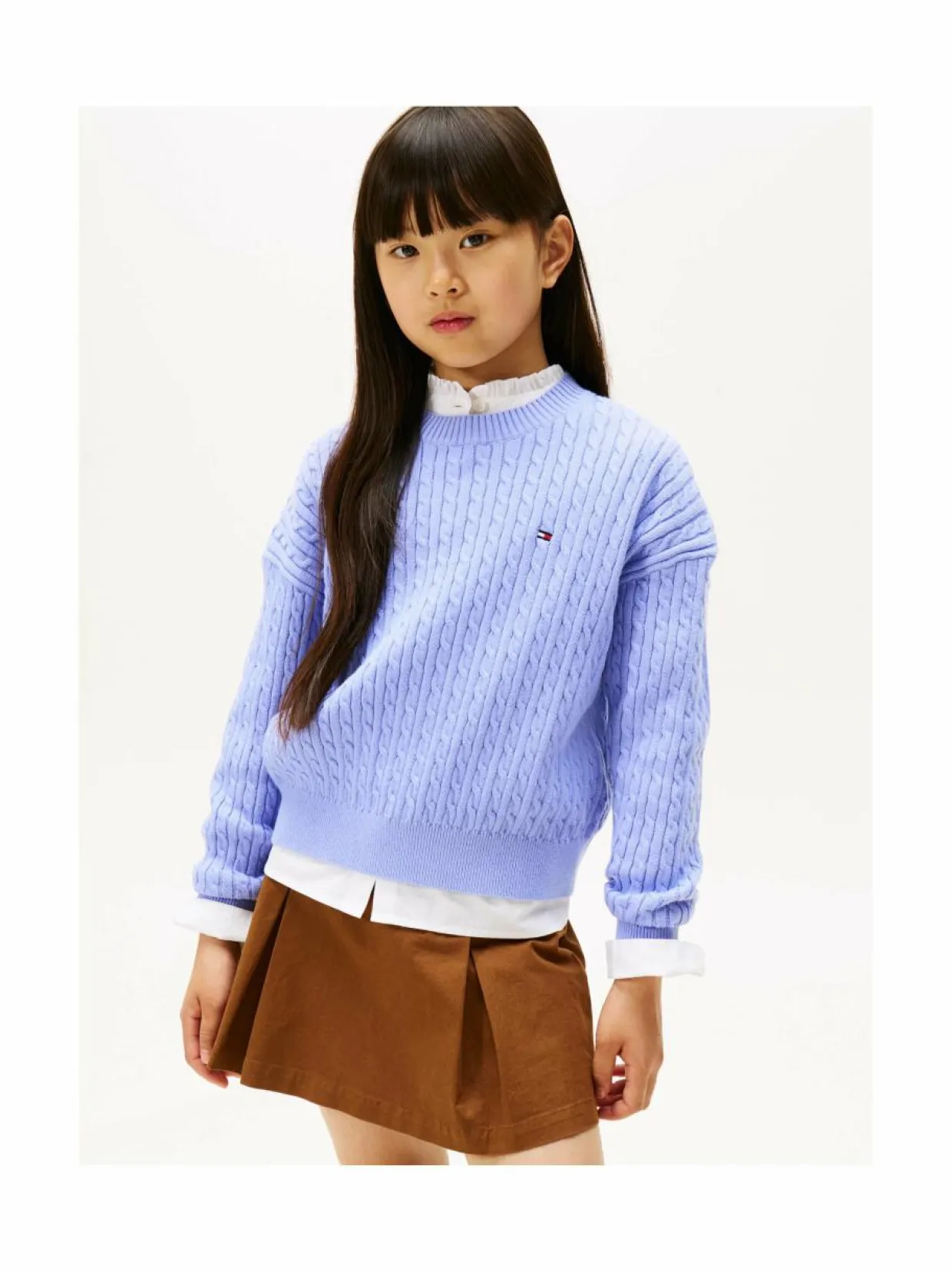 Materiaali100 % puuvilla Hoito-ohjeetKäsittele hellävaraisesti, pesu samanväristen kanssa VäriC5Z VINTAGE IRIS Avainsanatneule, neulepaita, kaapelineule, luomupuuvillaneule, lasten neule, Tommy Hilfiger